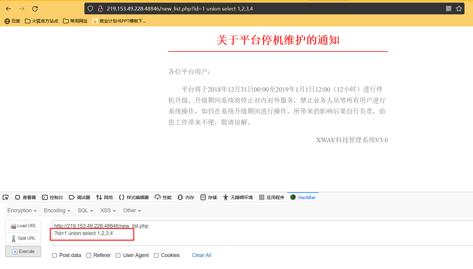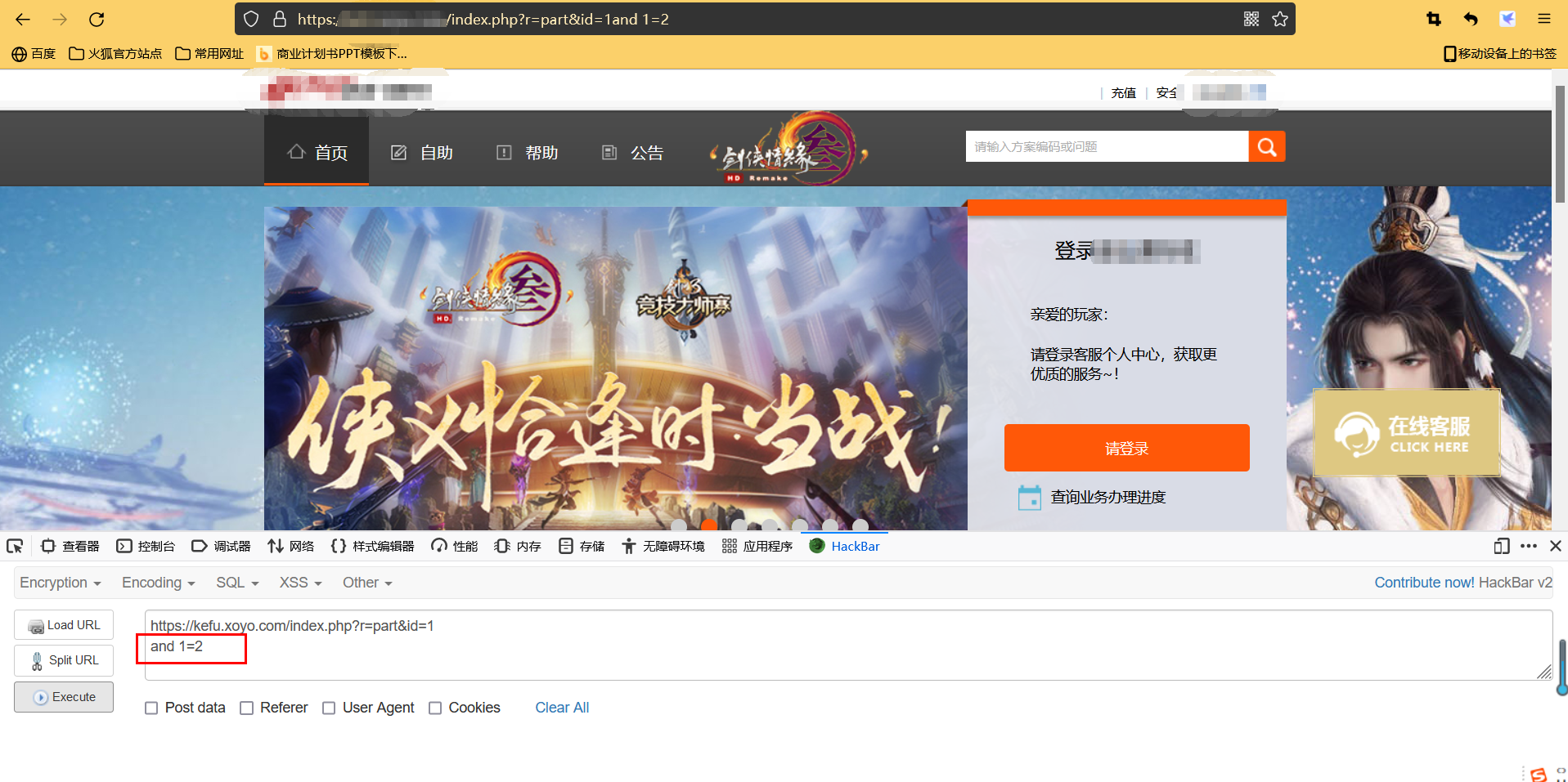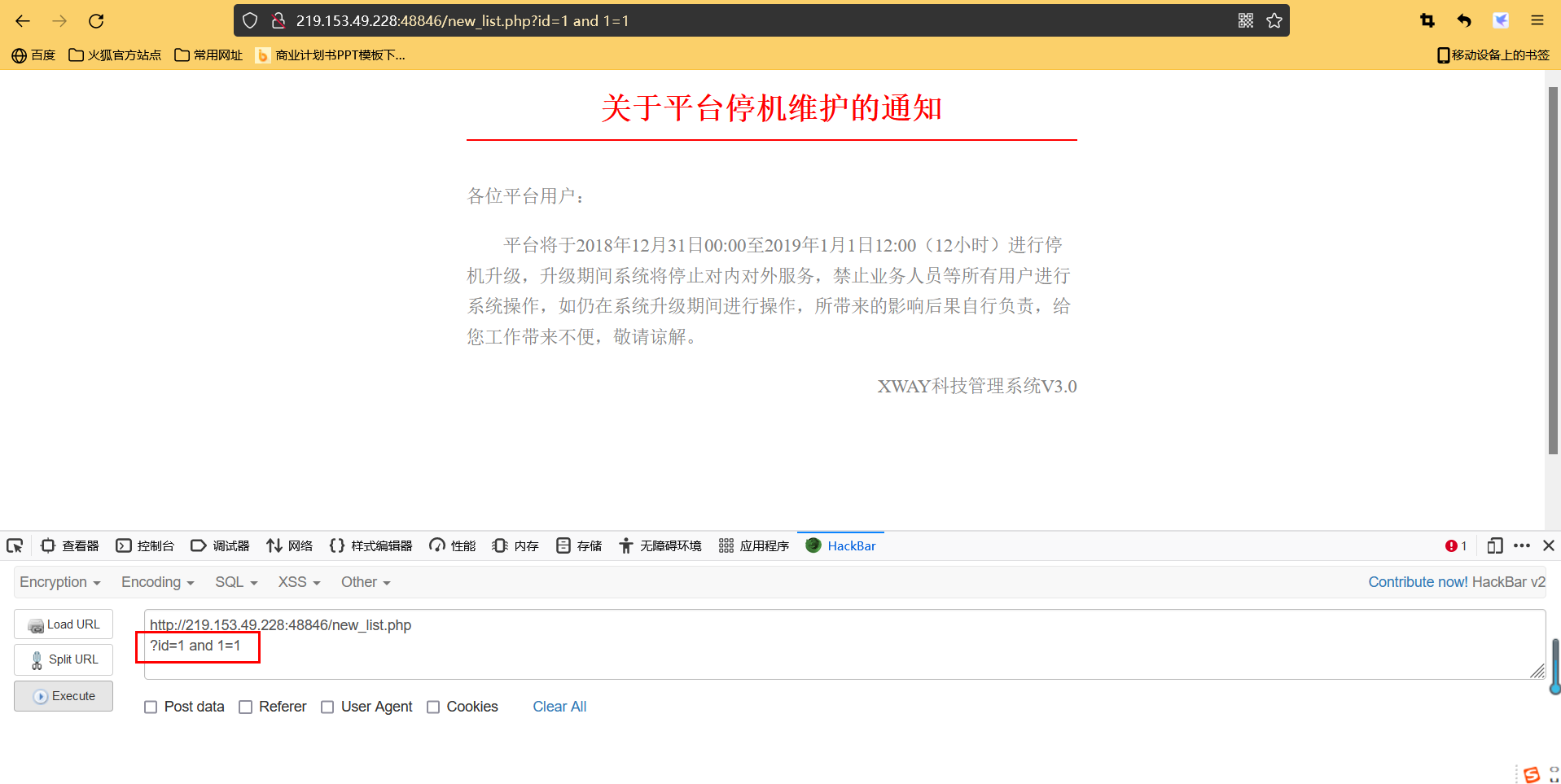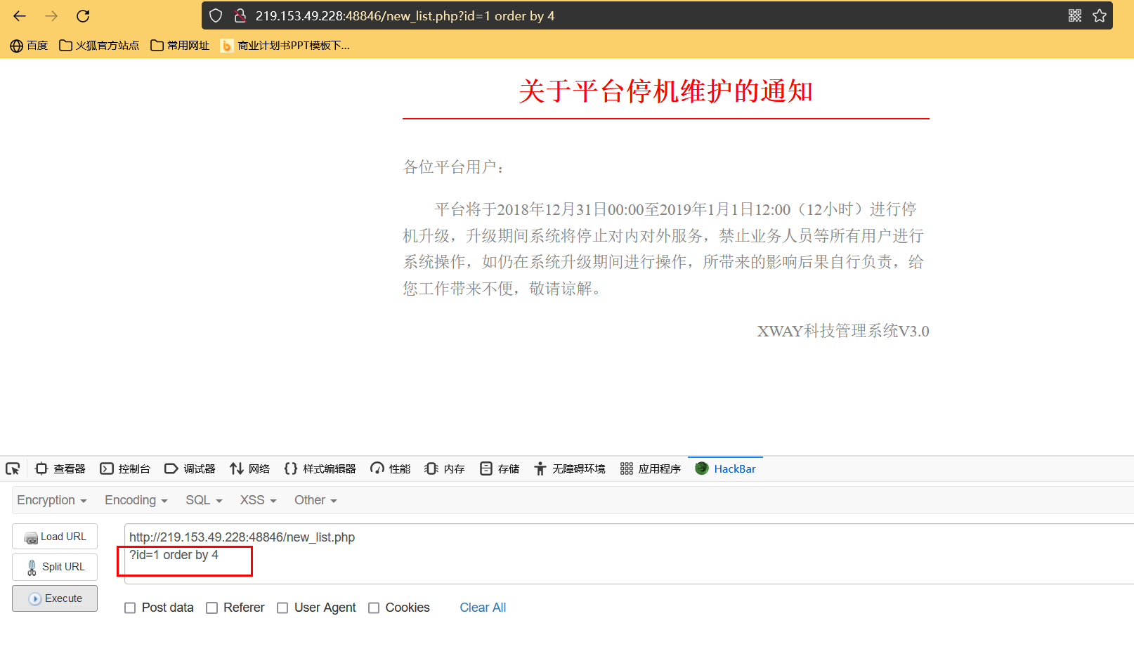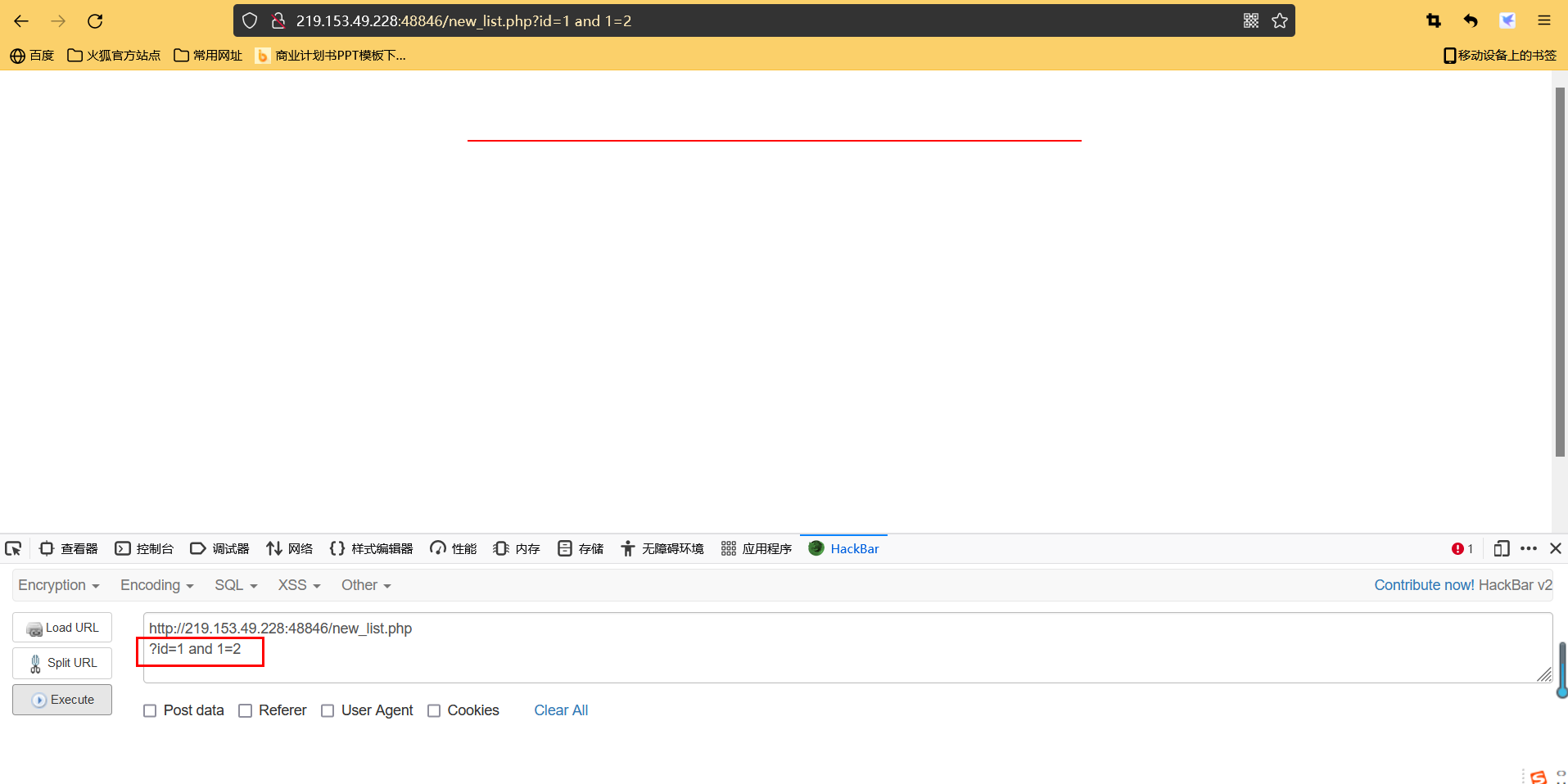 如果出现错误提示,则可能存在注入漏洞(可能)