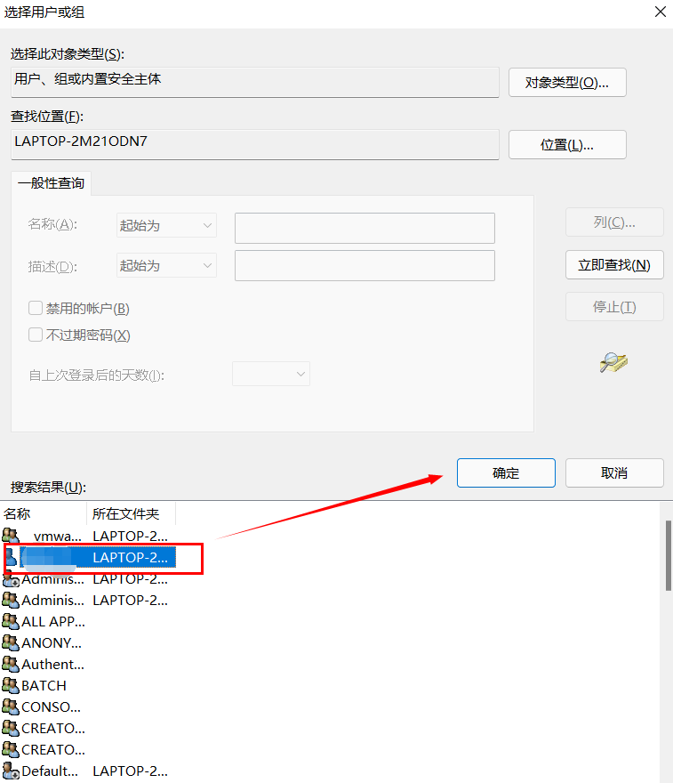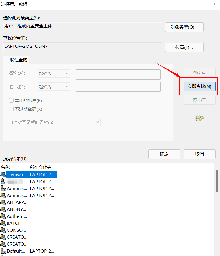 点击添加----->选择主体------>点击高级------->点击立即查找----->找到当前所使用的用户账号(自己设置的用户名。这个应该自己能找到)------>点击确认
