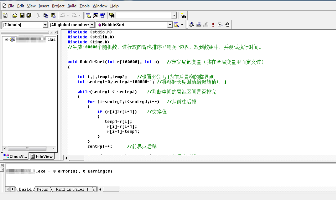 【c/c++算法】生成100000(10w)个随机数,进行双向冒泡排序+‘哨兵‘边界,放到数组中,并测试执行时间(冒泡中的王牌泡)