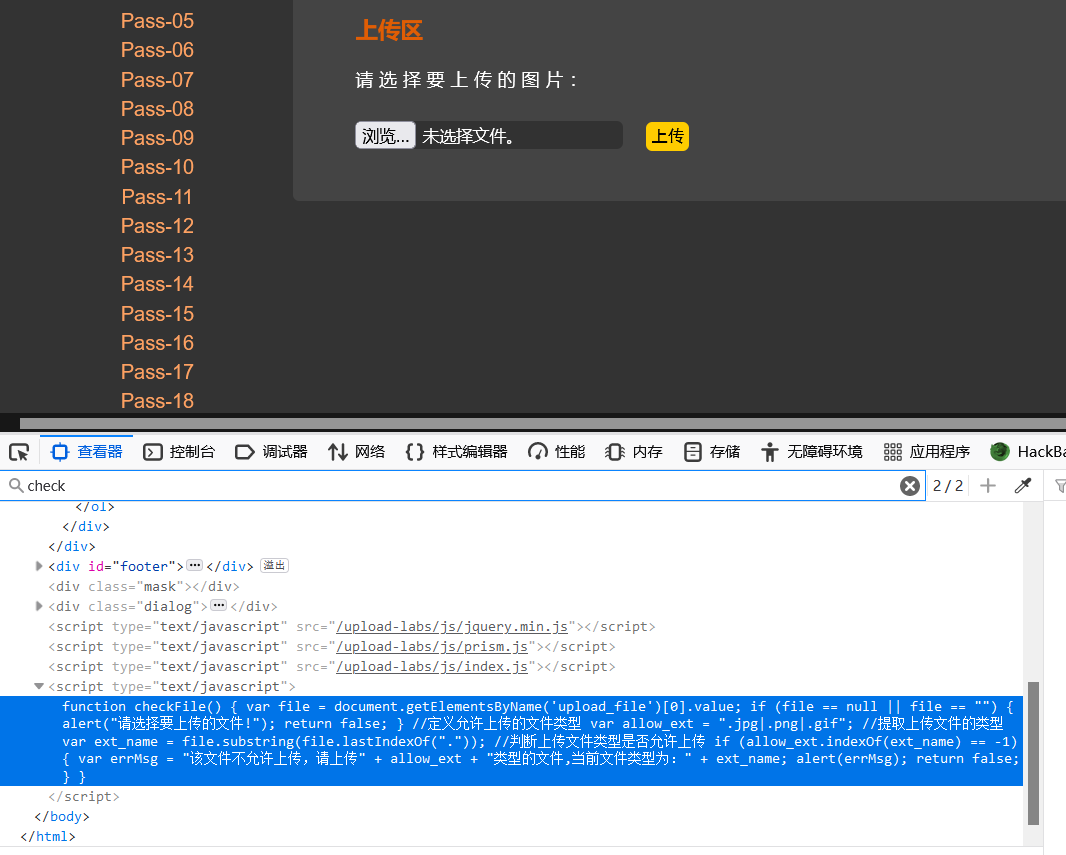 方法三:可以直接在浏览器检查代码并把checkFile()函数删掉或更改