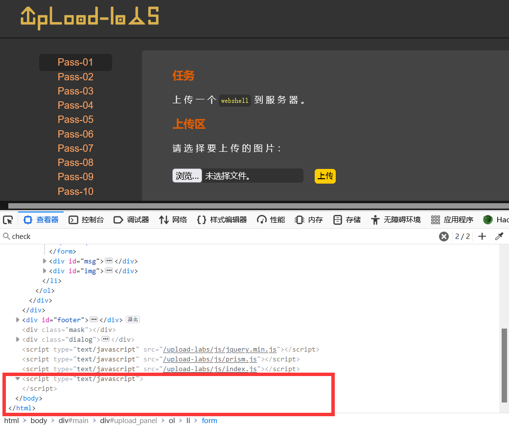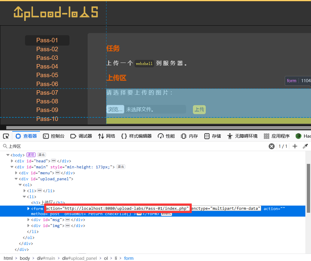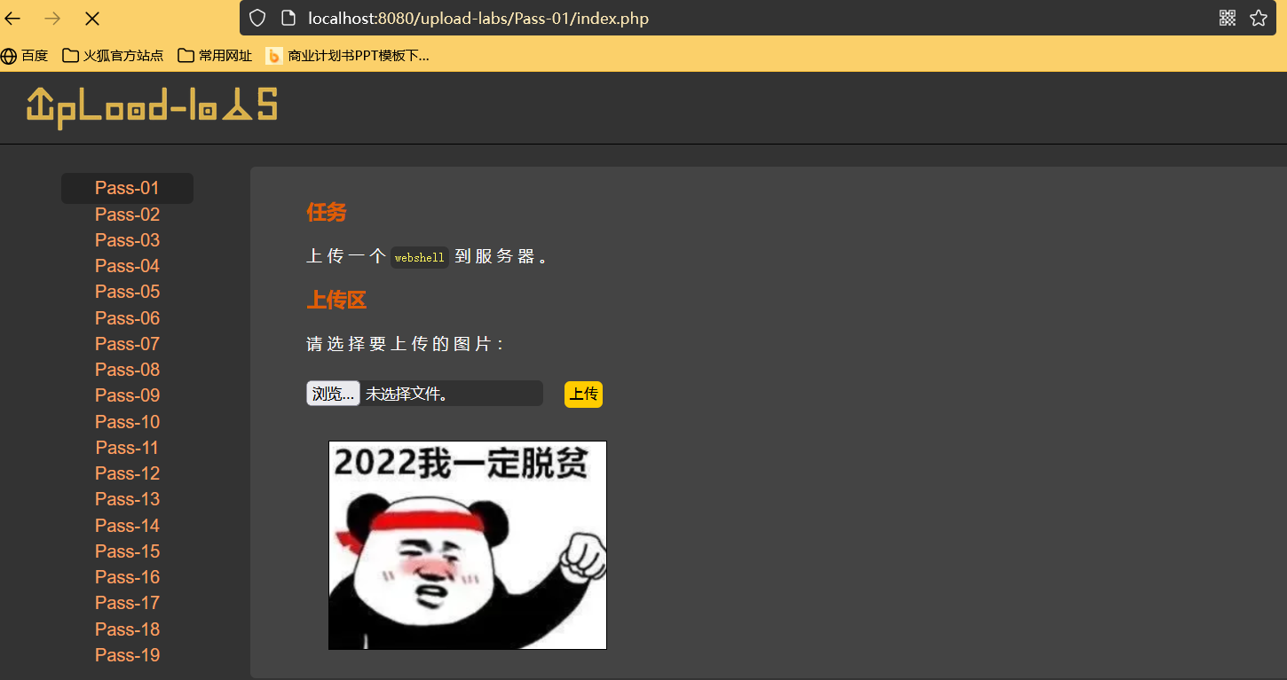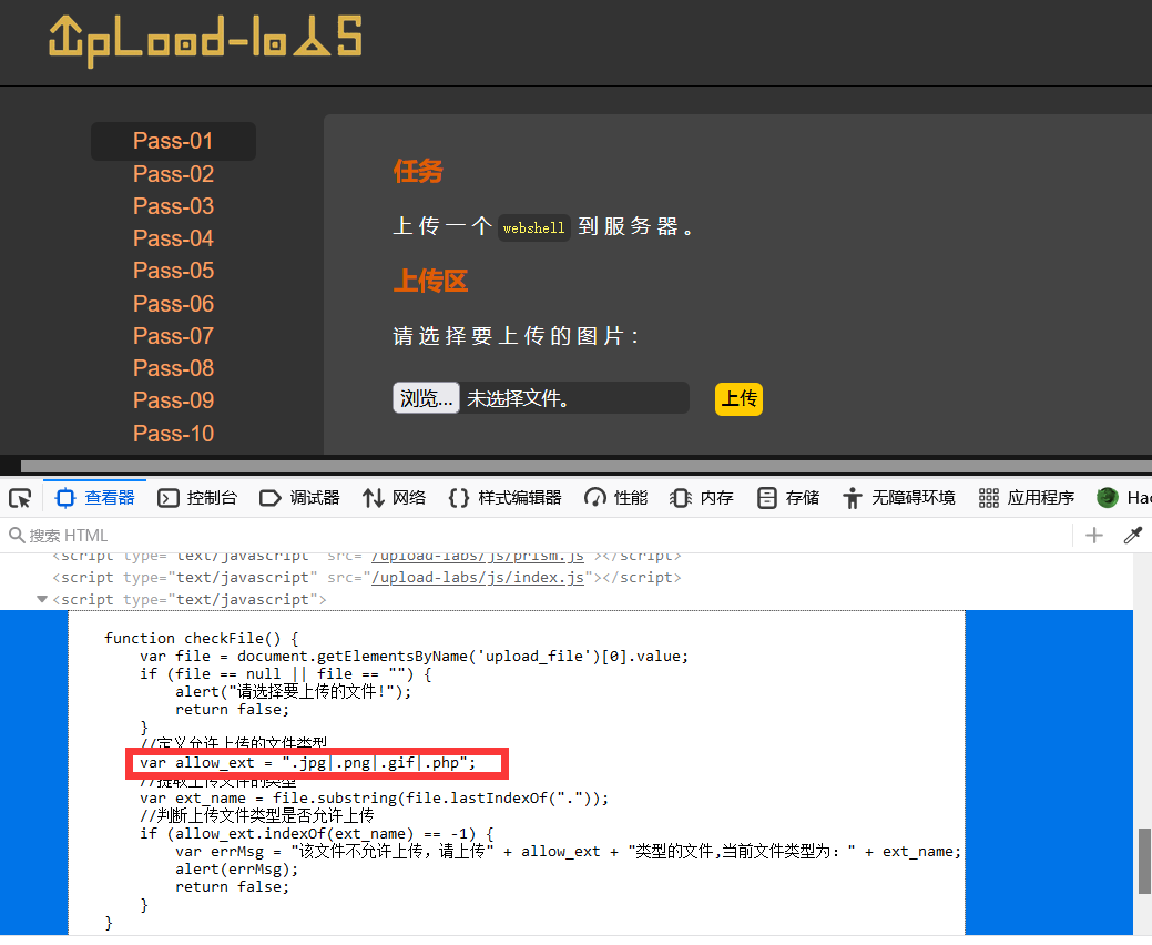 添加后http://localhost:8080/upload-labs/Pass-01/index.php