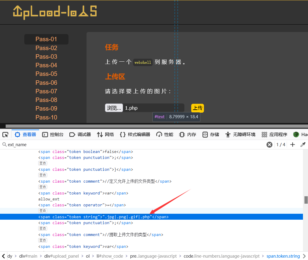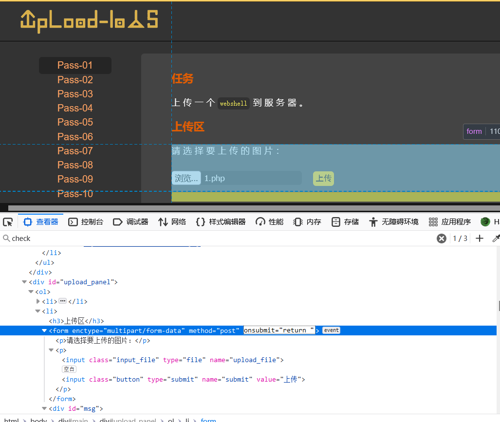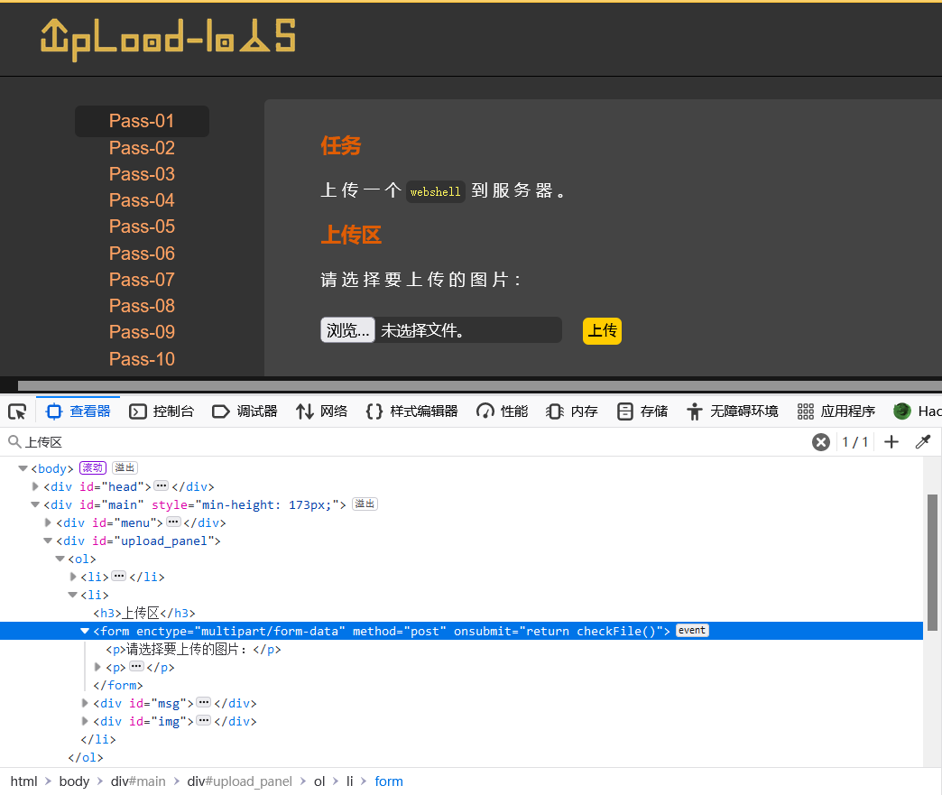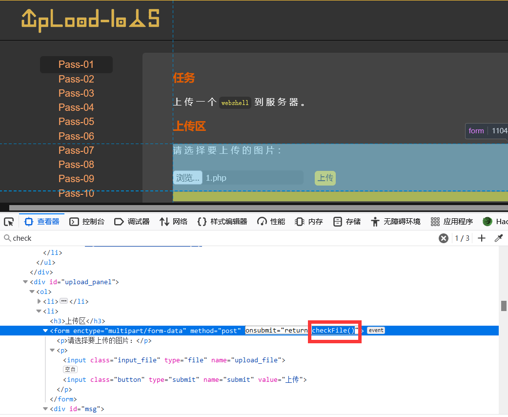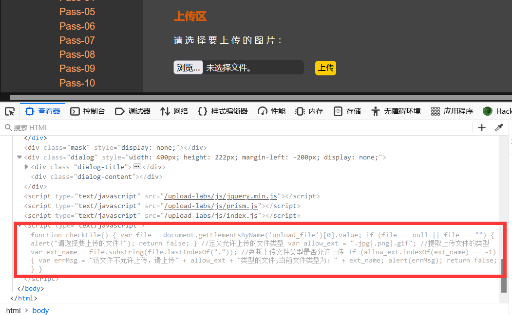 添加后http://localhost:8080/upload-labs/Pass-01/index.php