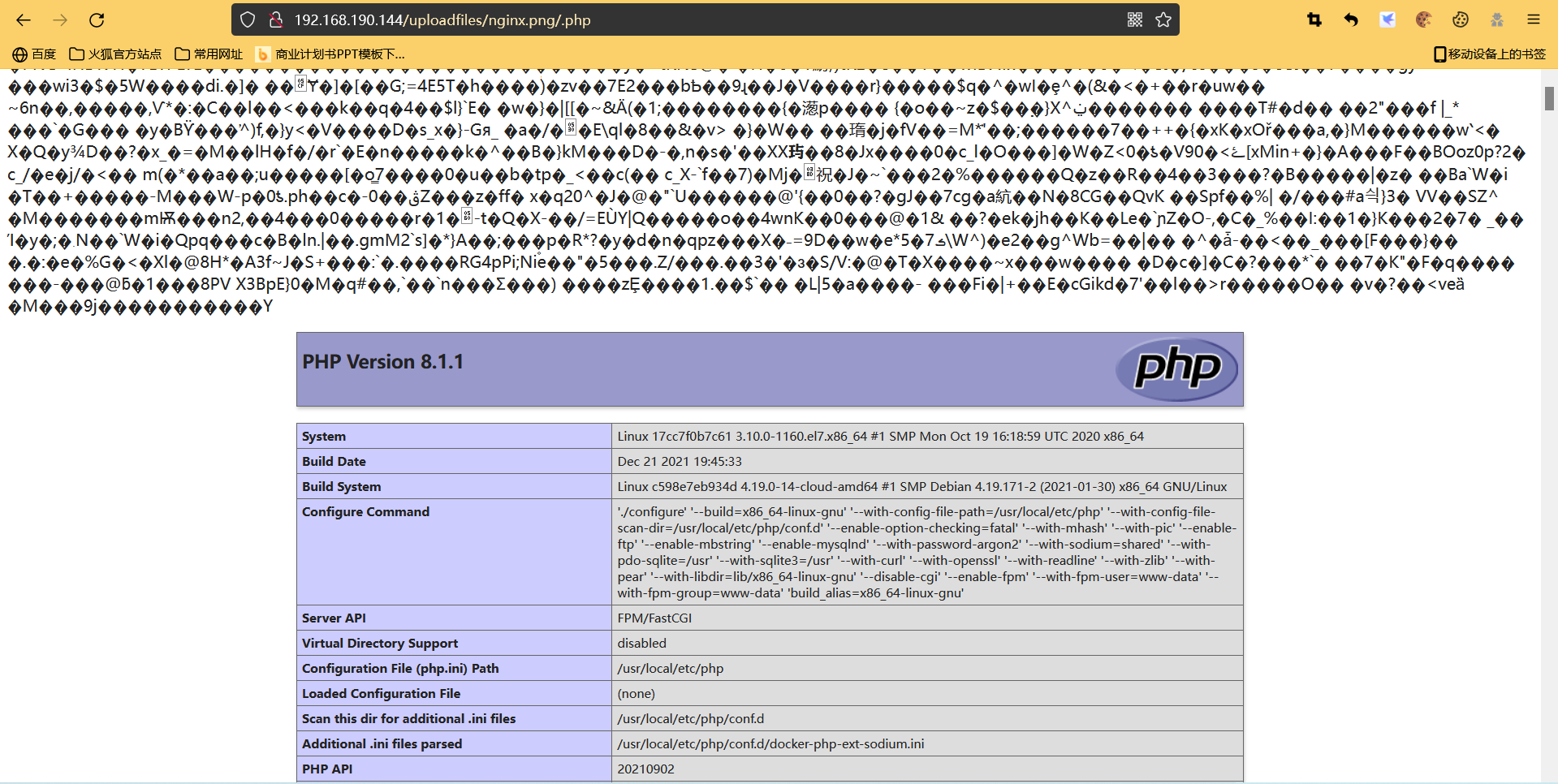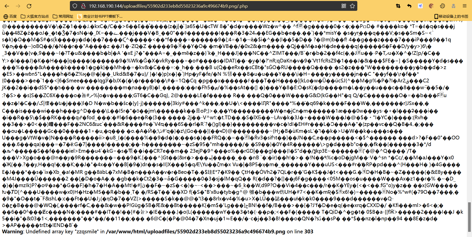 打开图片在网站所在位置,上传图片的后缀是.png所以会显示图片,但不会执行代码