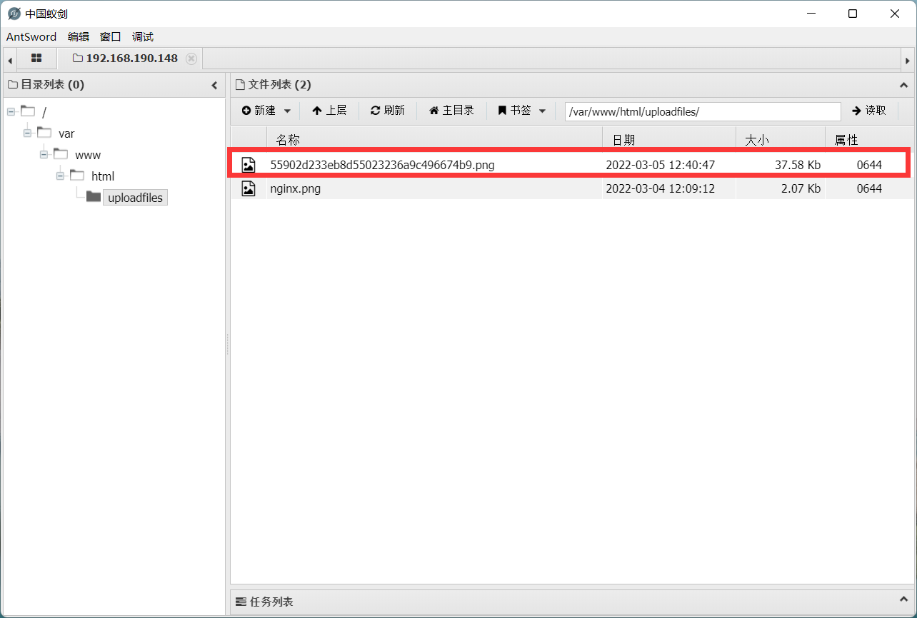 可以看到上传了一个PHP格式,所以无法显示照片,文件目录下也有了文件