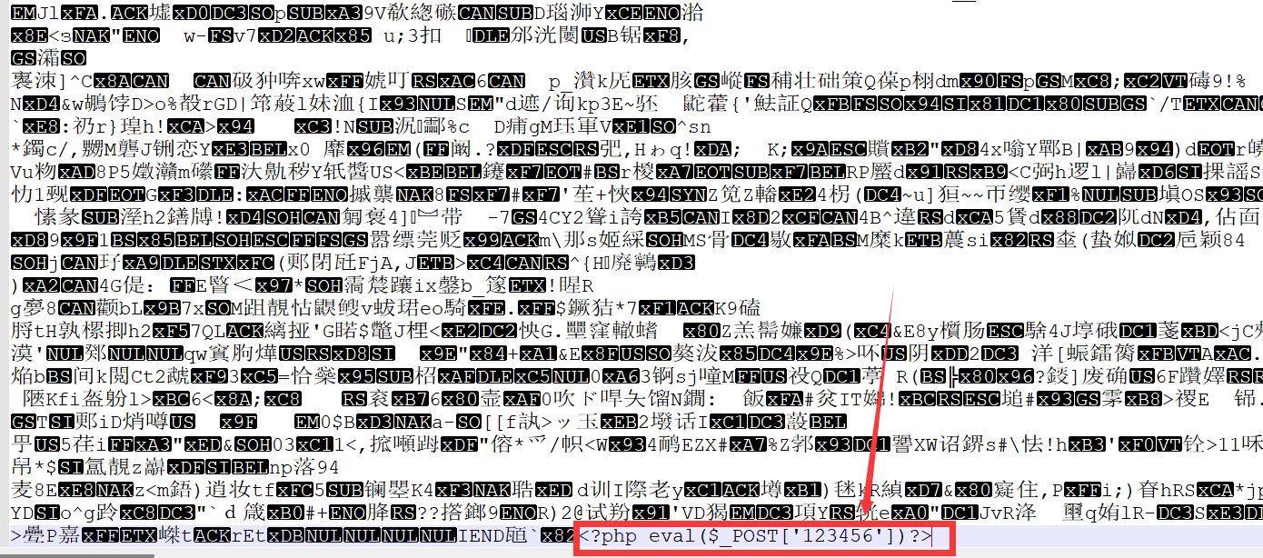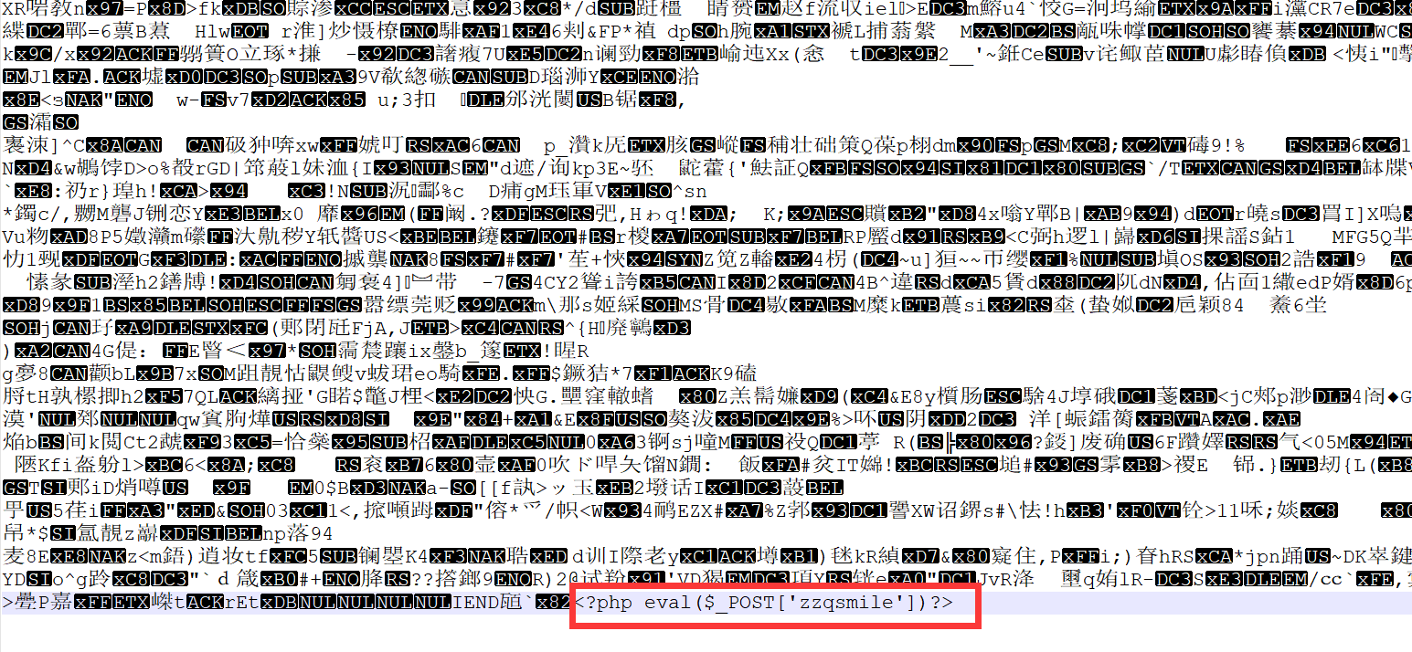 如果在地址后面加上/.php会发现出现了乱码并执行了代码