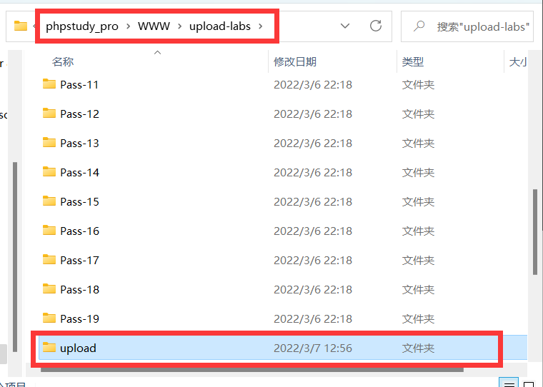 打开phpstudy\phpstudy_pro\WWW\upload-labs(即WWW下的upload-labs下)
