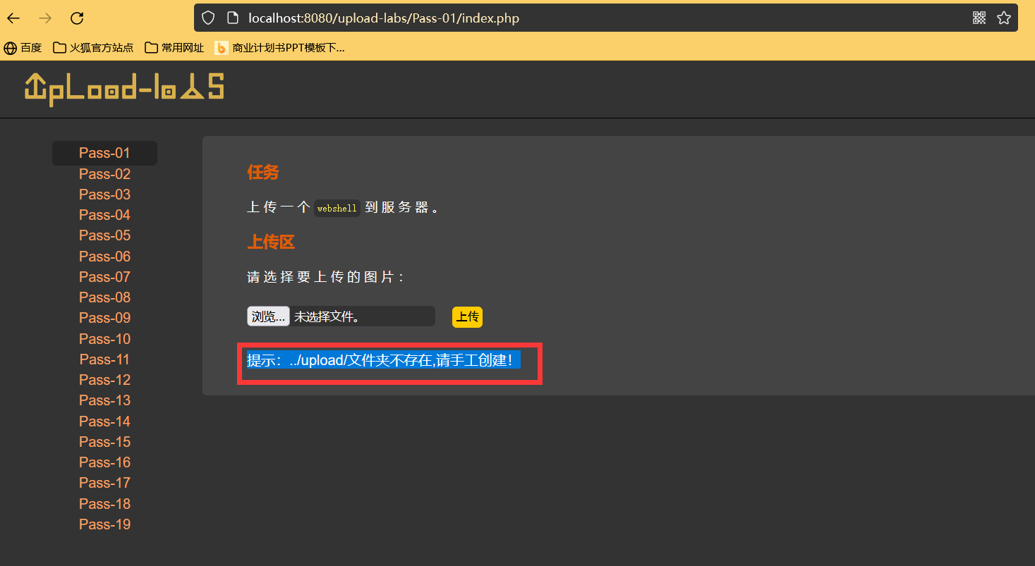 新建upload文件解决upload-labs问题“提示:../upload/文件夹不存在,请手工创建”