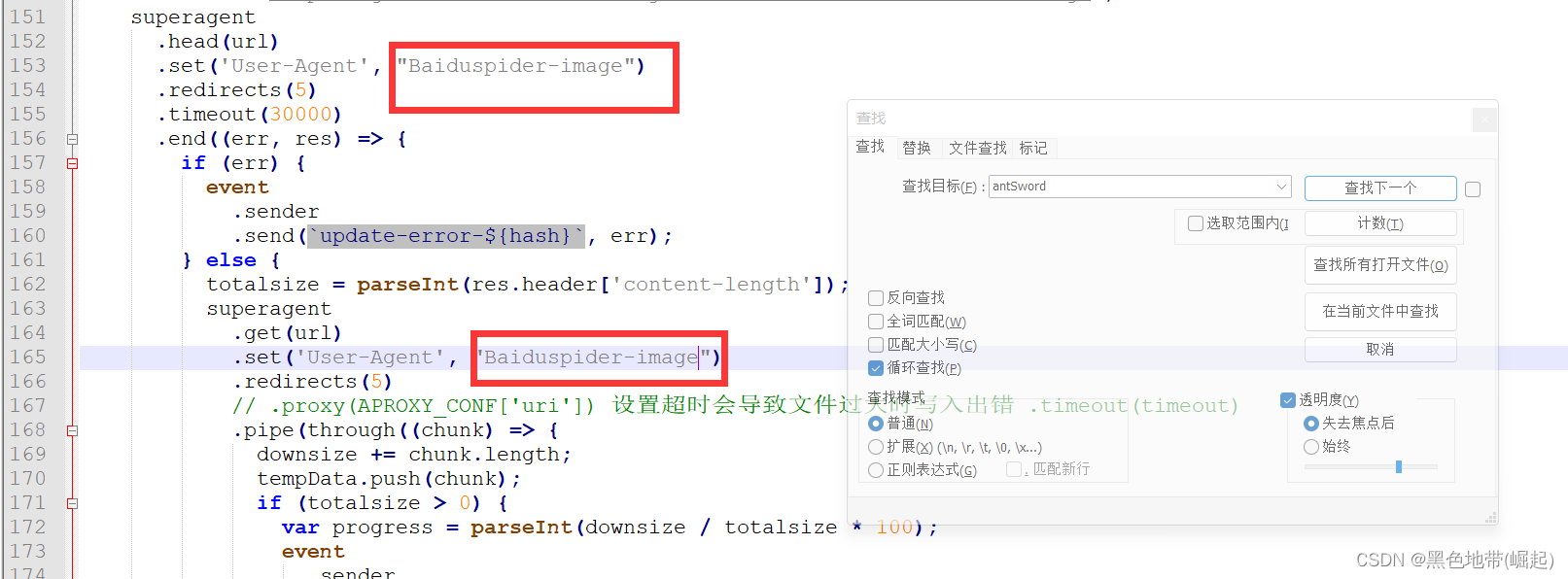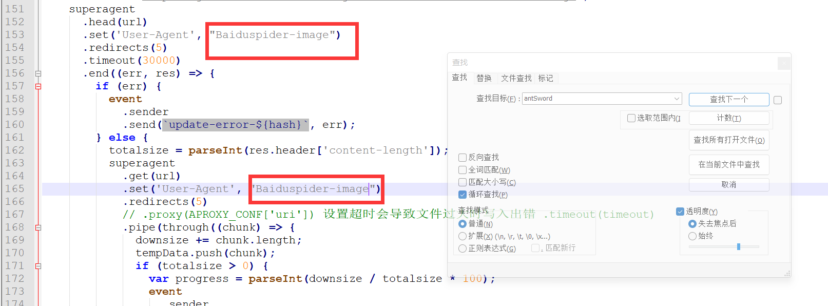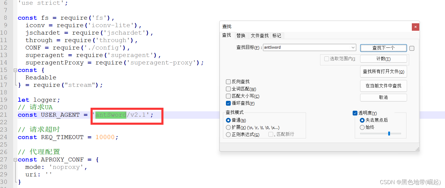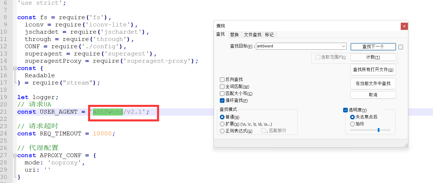 修改const USER_AGENT = 'antSword/v2.1';(使用查找,在第21行)