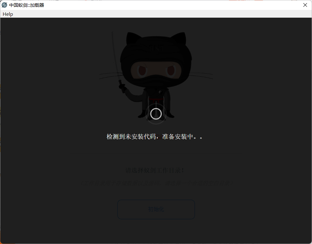 第一次安装项目需要先初始化,在上面已经下载了核心源码(antsword),就选择其为项目源码的文件夹。