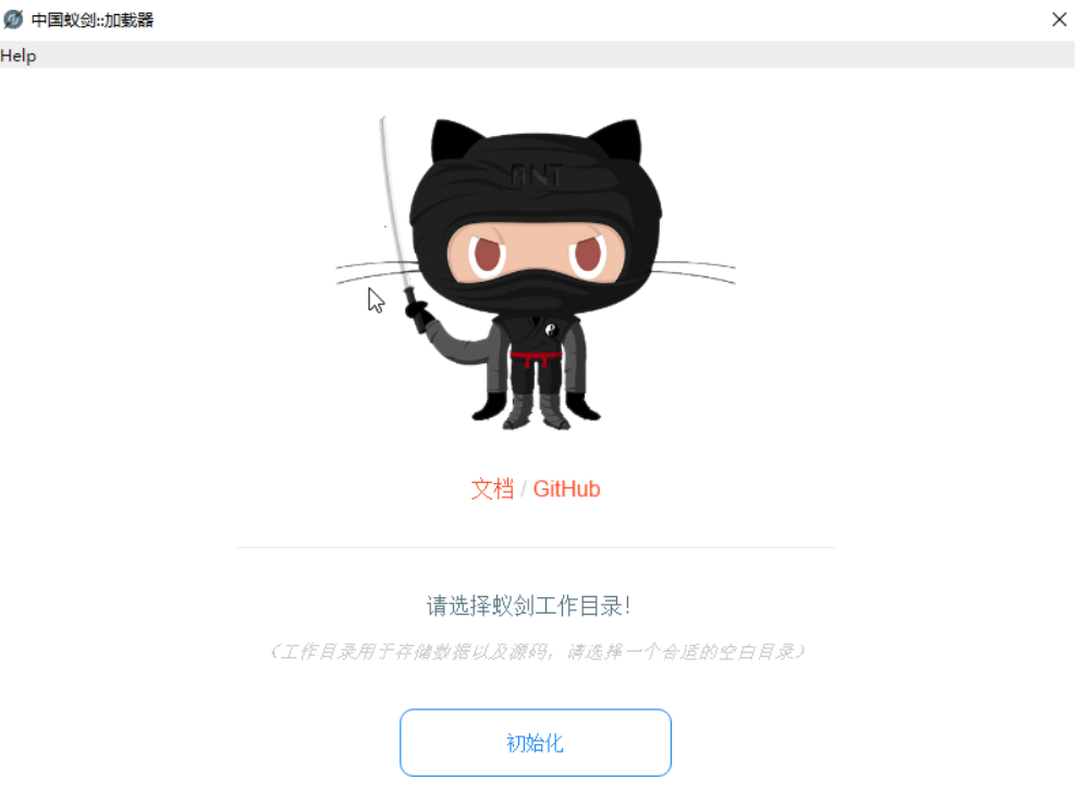 所以还是要将初始化选择源码包antSword目录,初始化后会自动重启,再次打开就能正常运行了