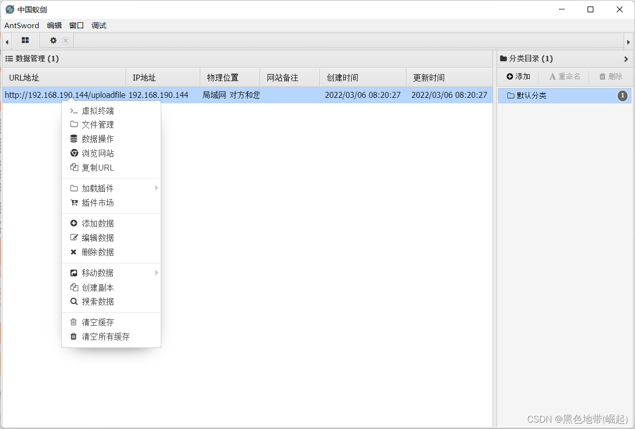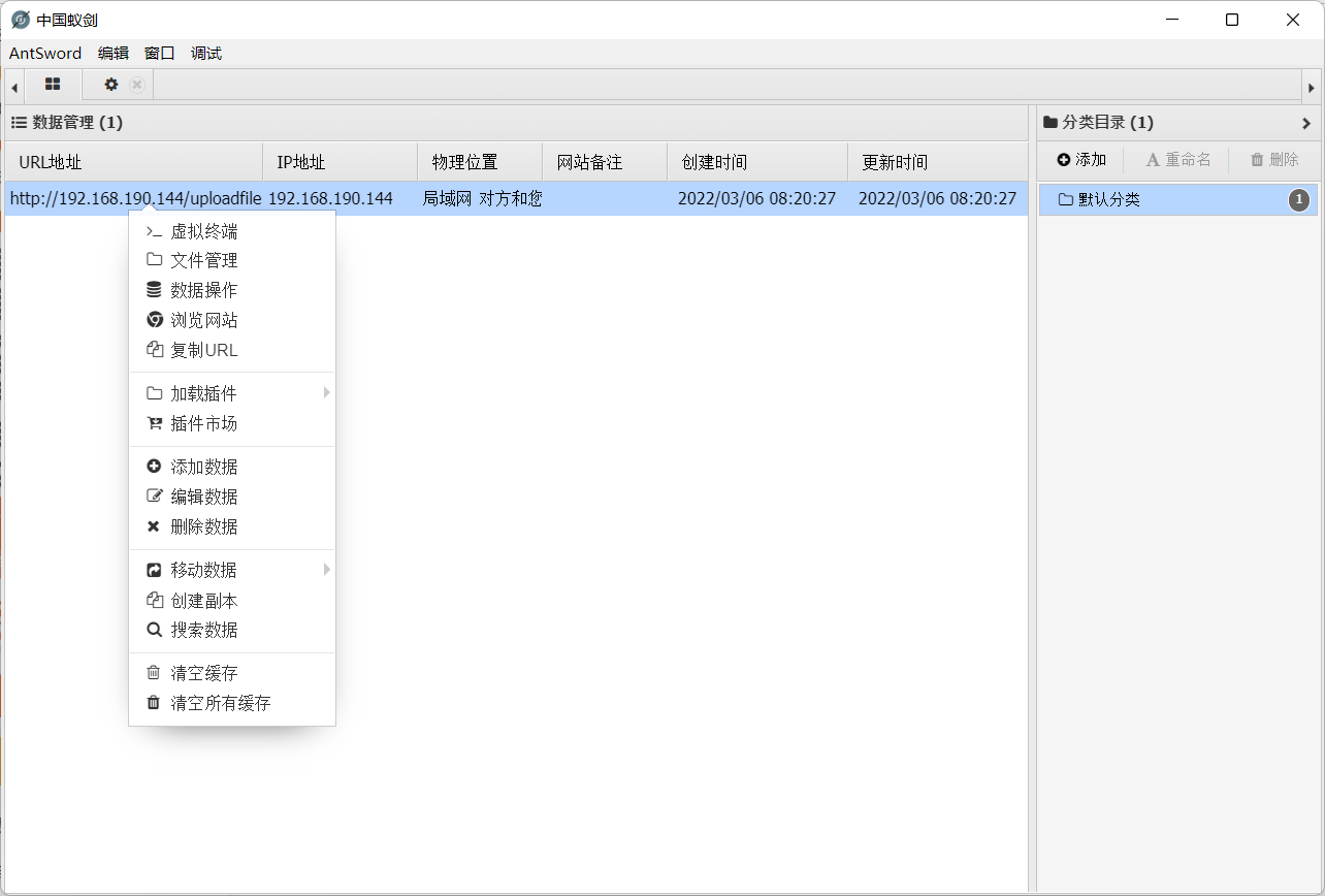 中国蚁剑是菜刀的进阶版shell控制端软件,是一款开源的跨平台网站管理工具。