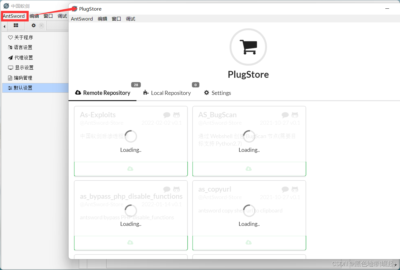 第一步:解压后,打开加载器antsword-Loder文件,并运行AntSword.exe程序