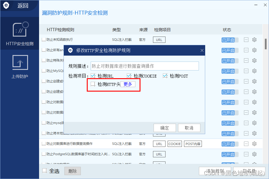 但是其默认的检测HTTP头是没开的