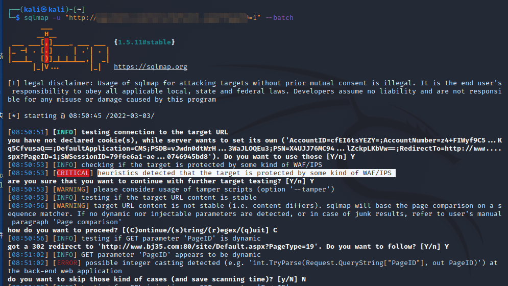 (–-identify-waf 检测WAF:新版的sqlmap里面,已经过时了,不能使用了)