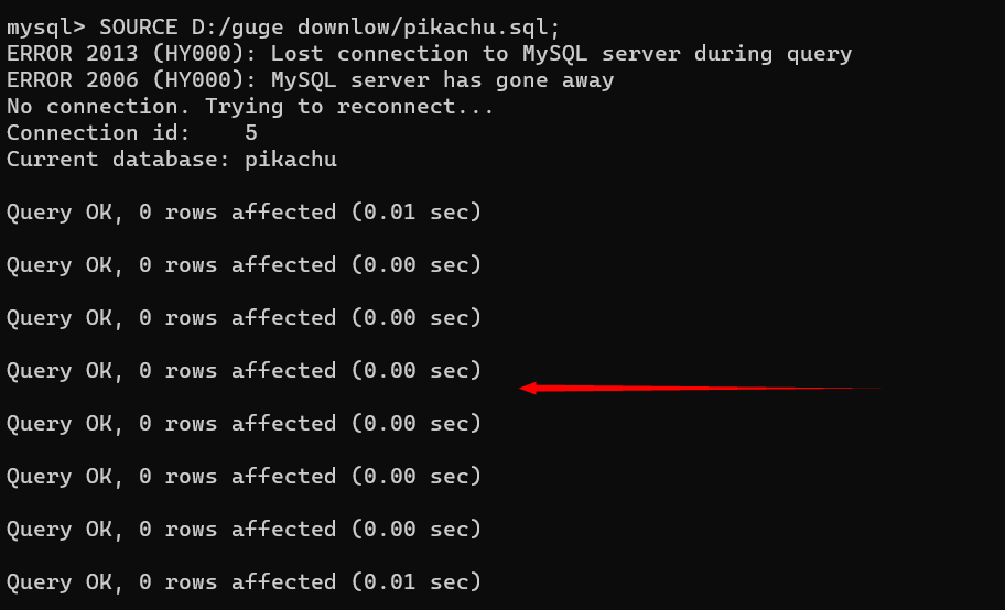 再次在终端复查,出现的导入的SQL文件,问题基本解决了