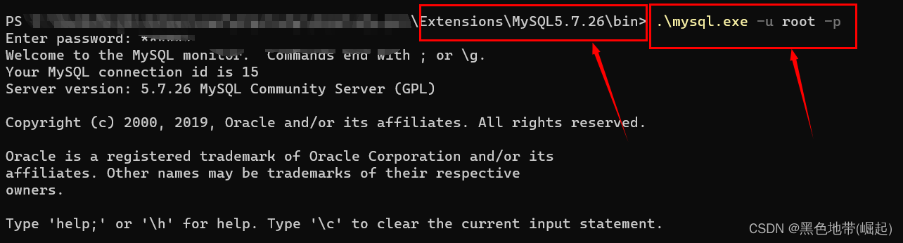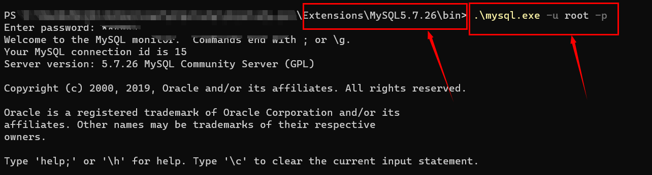 直接进入MySQL下bin里面,按住shift右键空白处open inwindows Terminal