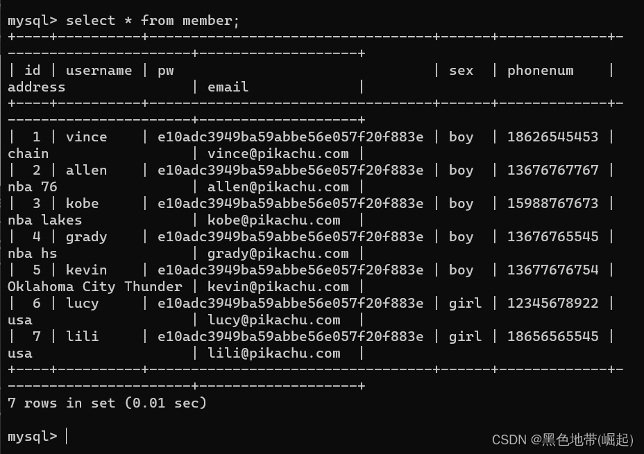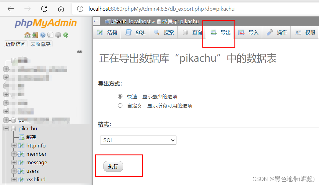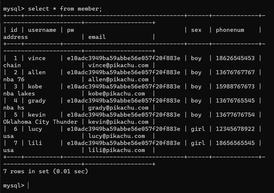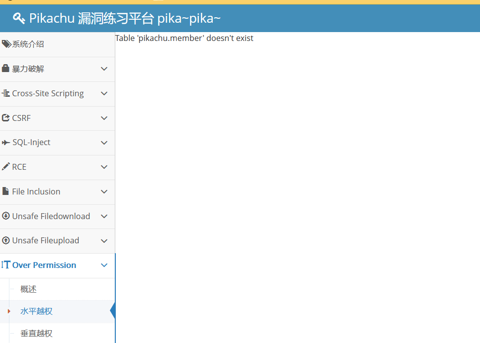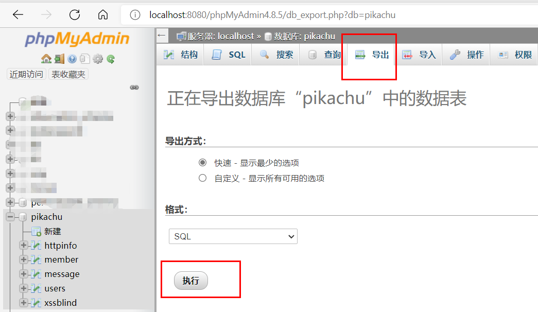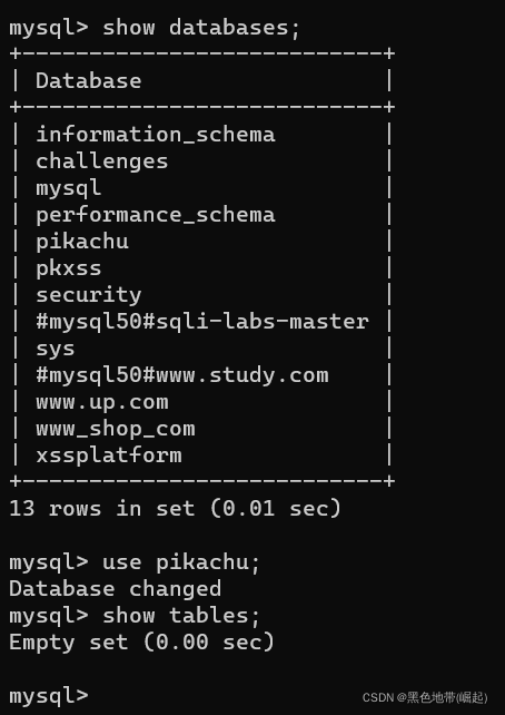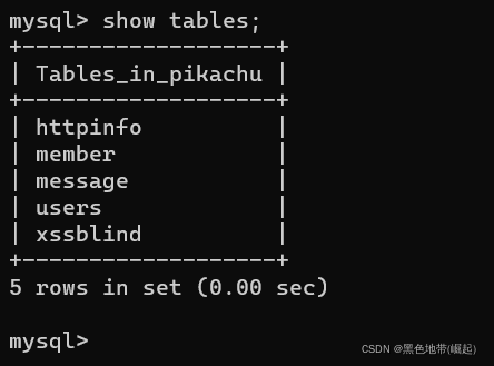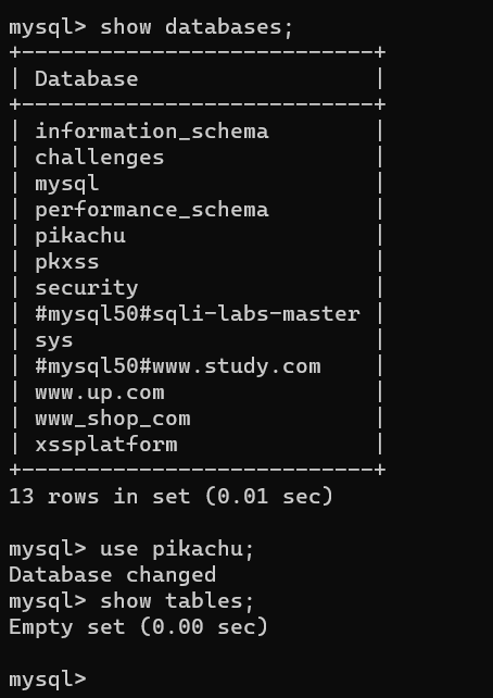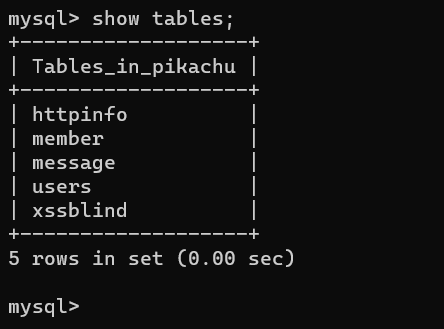 可以查看到pikachu数据库不是空表,里面有相关数据表