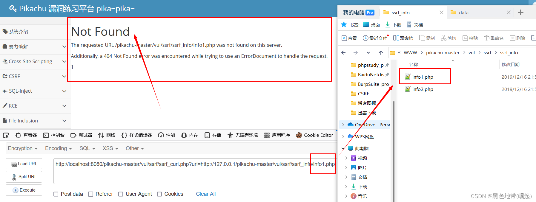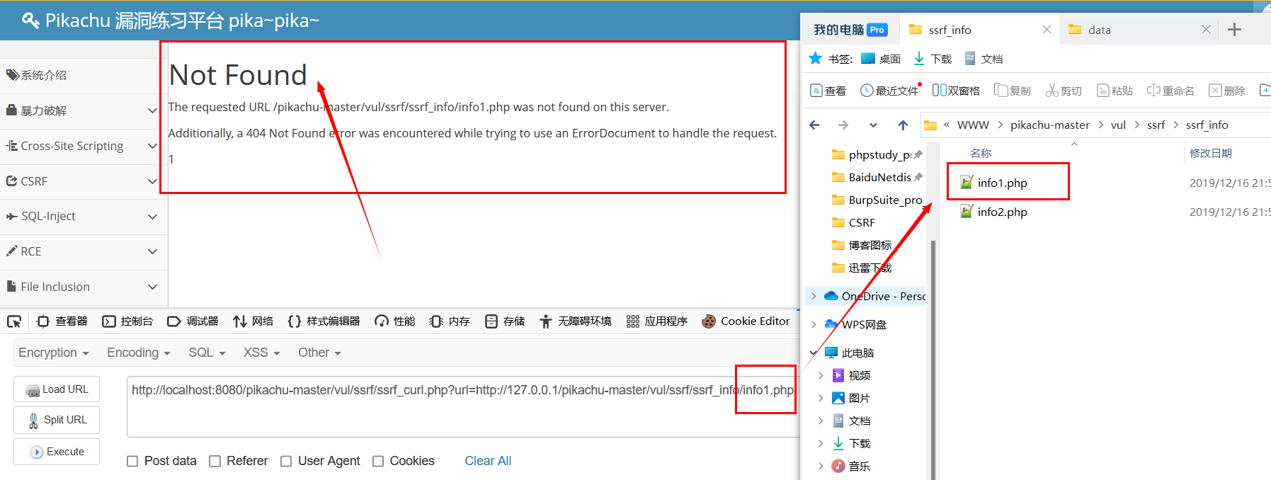The requested URL /pikachu-master/vul/ssrf/ssrf_info/info1.php was not found on this server.