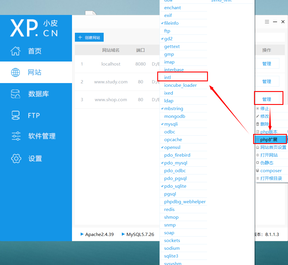 无论改哪个网站PHP扩展,所有当前php环境下都统一改变