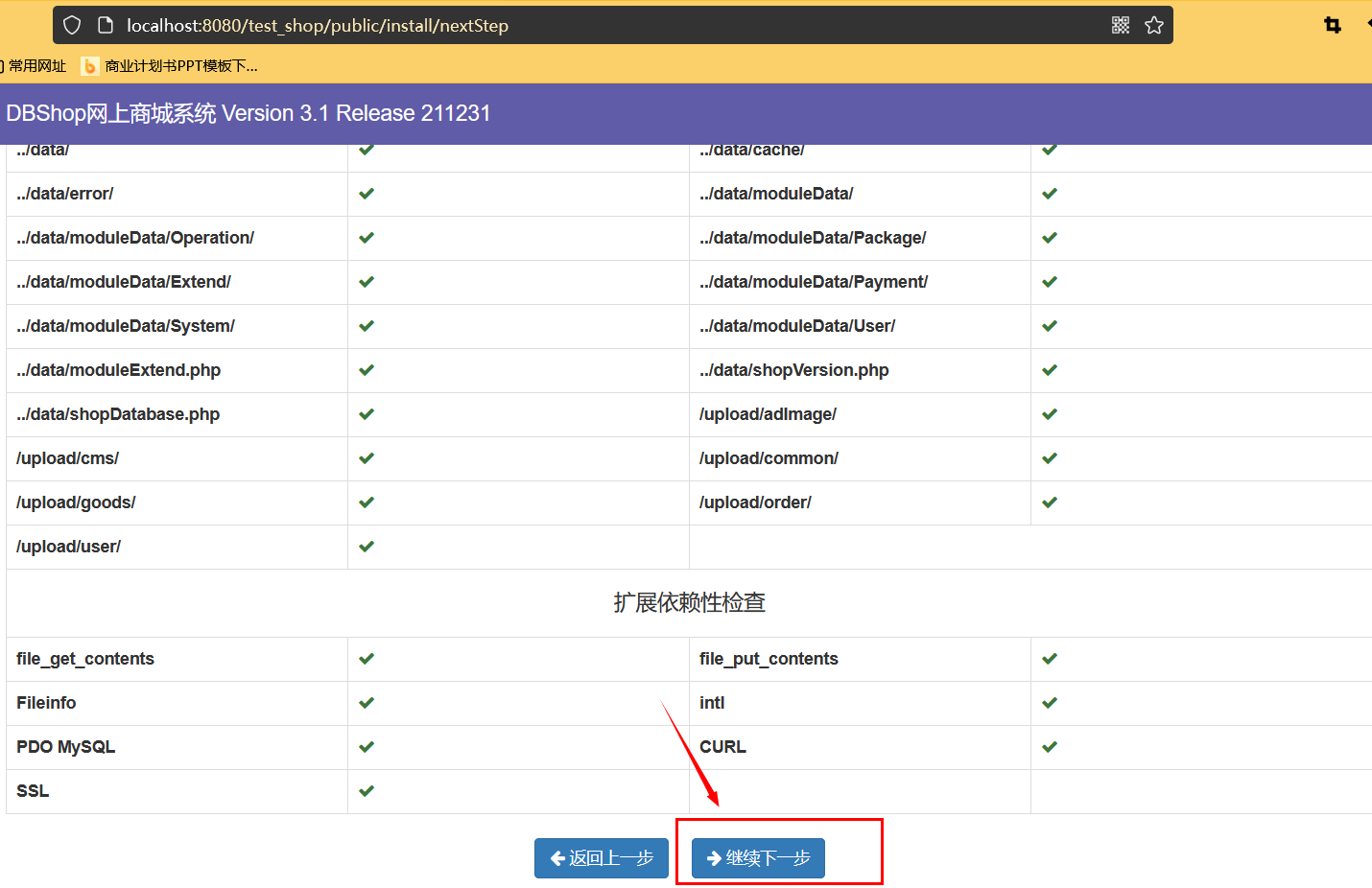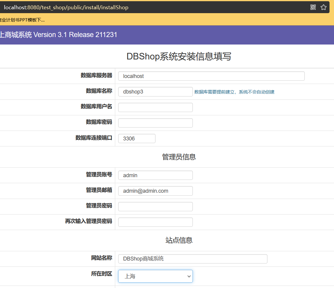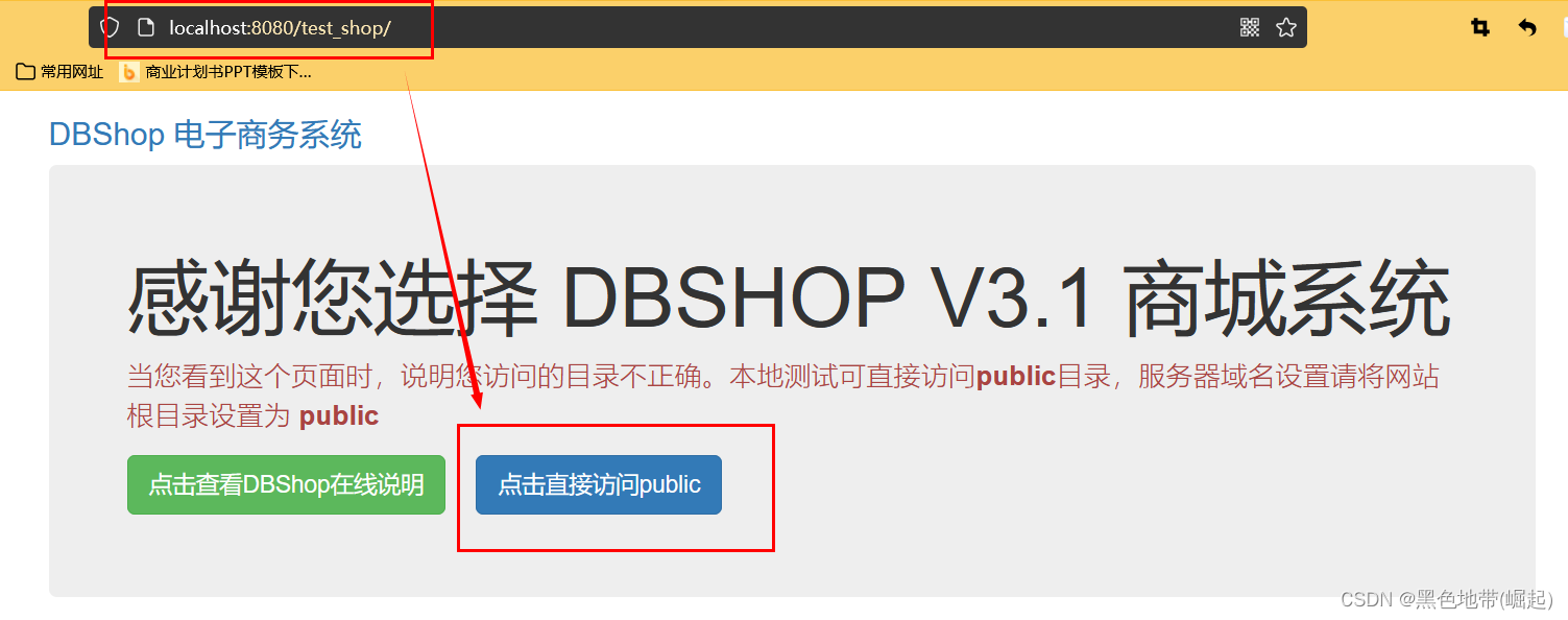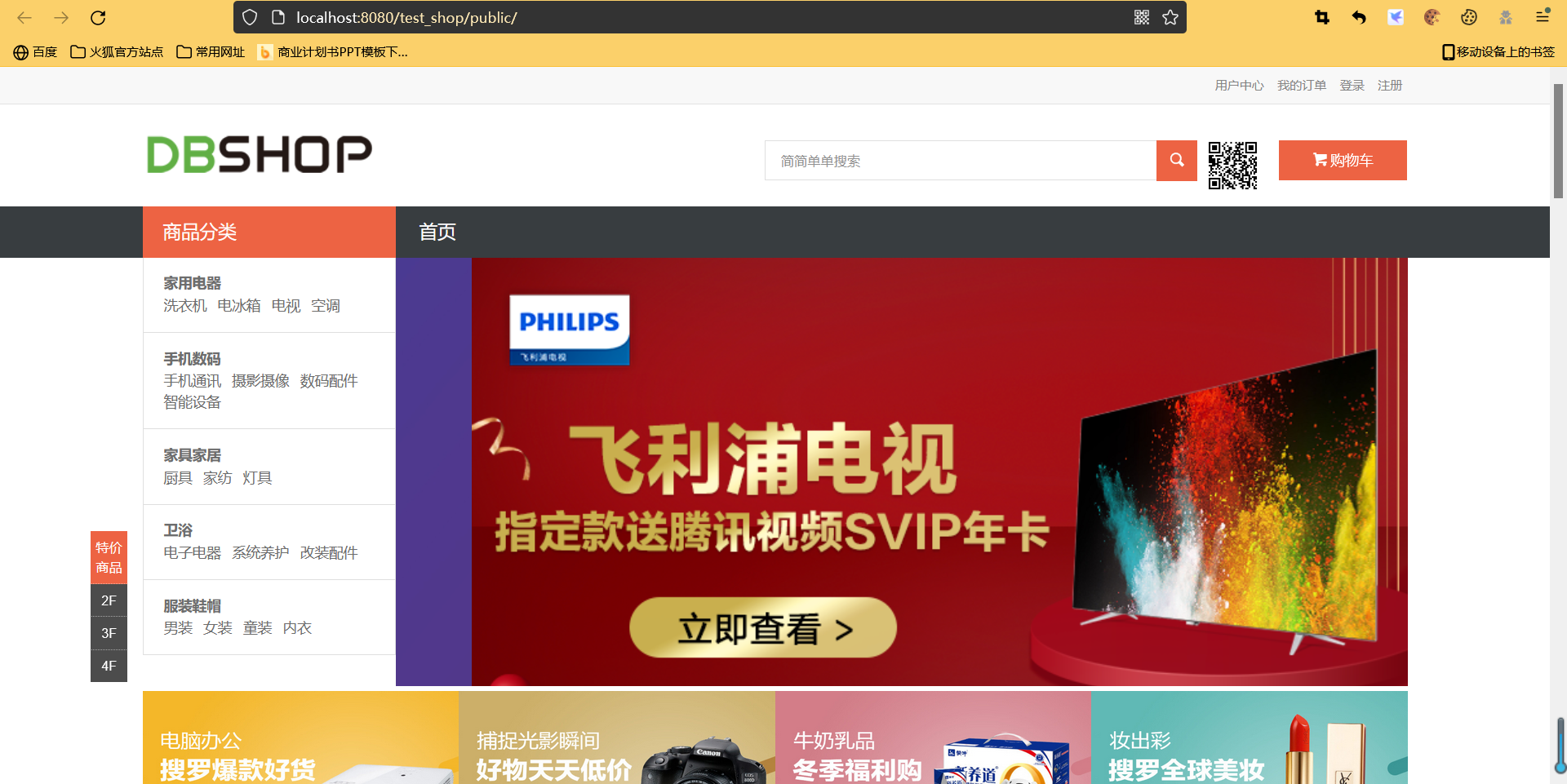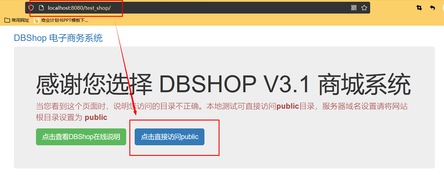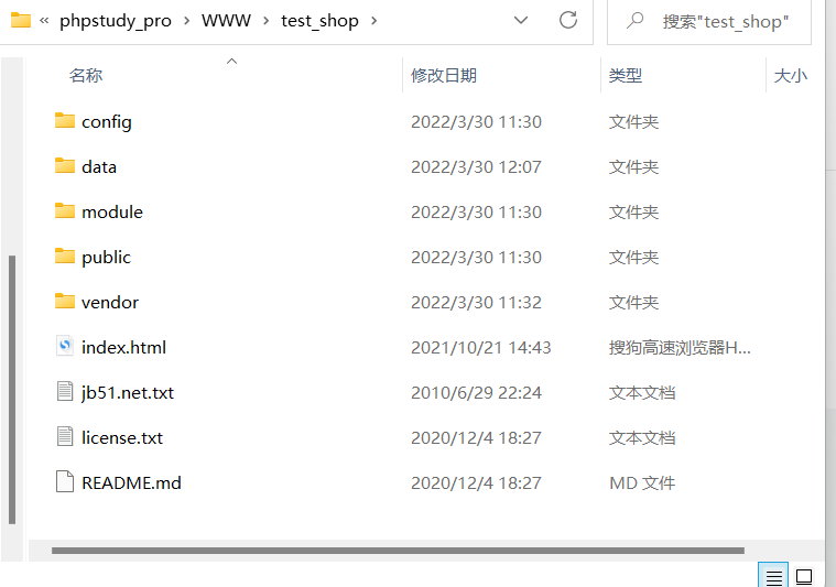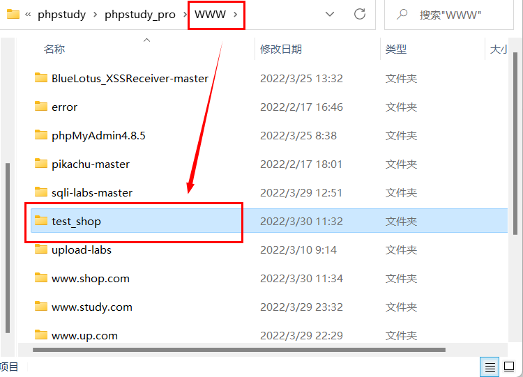 我的是localhost:8080/ 然后加上我www目录下的文件名 test_shop
