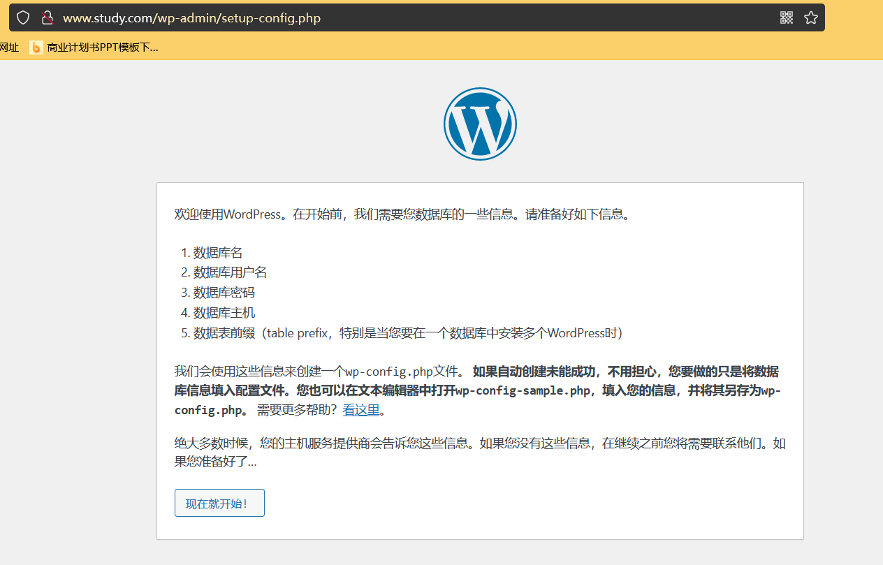 网站和数据库配置阶段