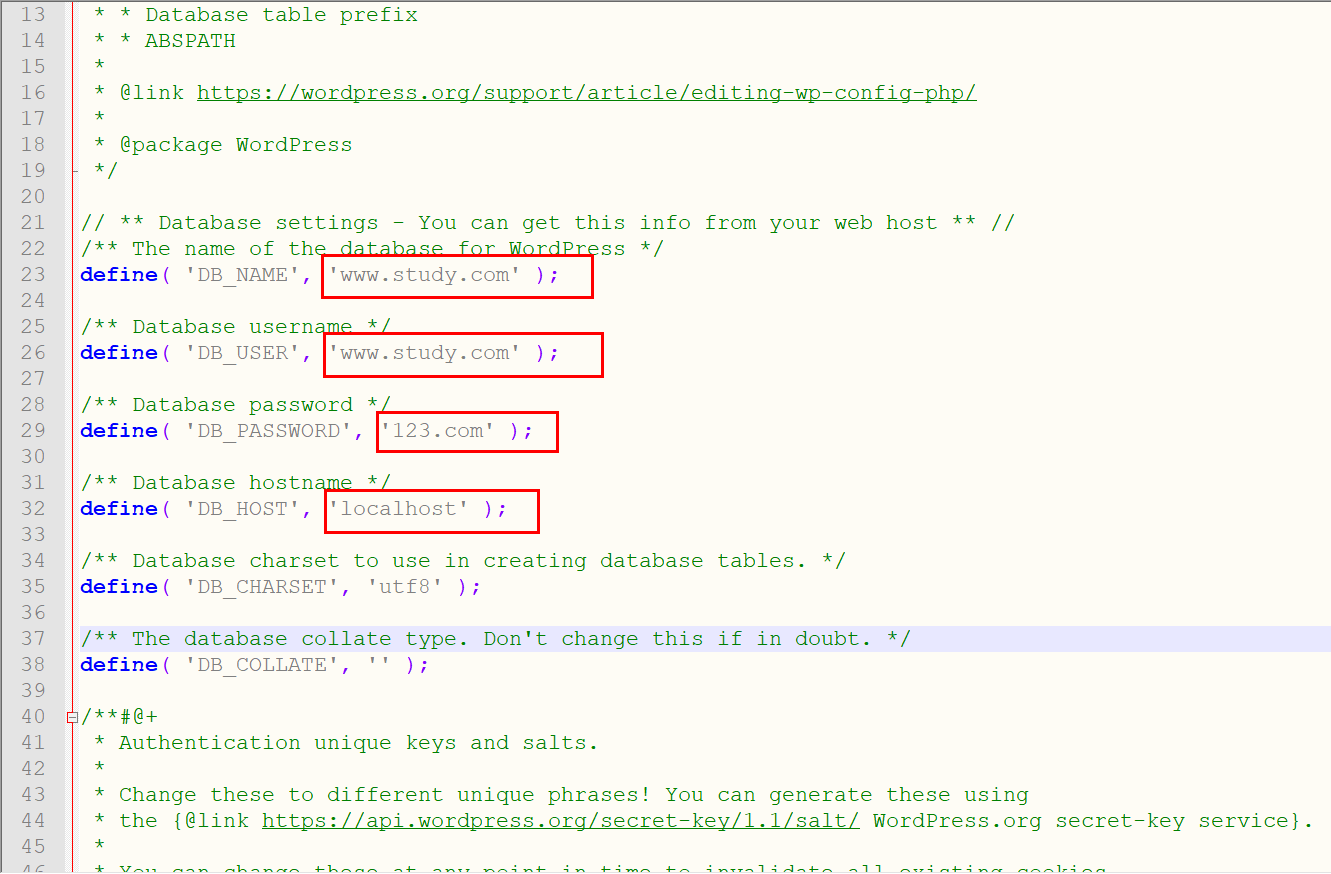 修改wp-confi-sample.php