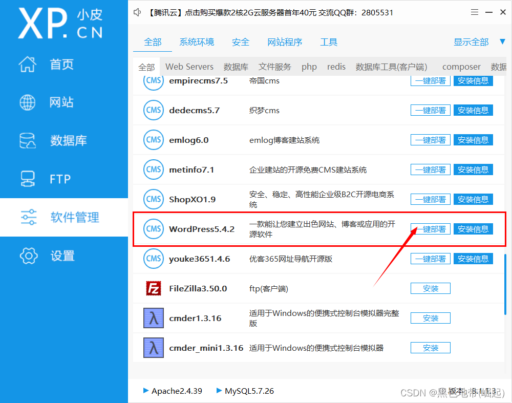 安装网站程序(可在官网下载,也可在phpstudy中一键部署)