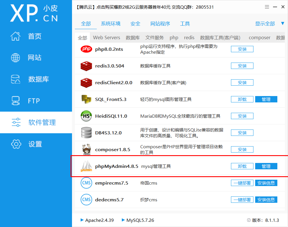 可以直接在phpstudy中的软件管理里面下载