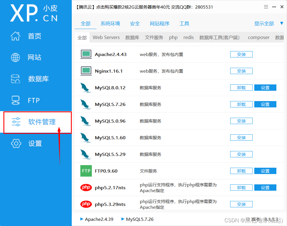 搭建网站,一般需要Apache/Nginx、FTP、Mysql