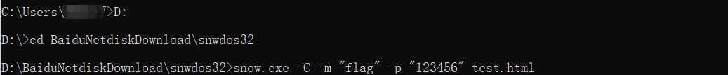 snow -C -m "I am lying" -p "hello world" infile outfile