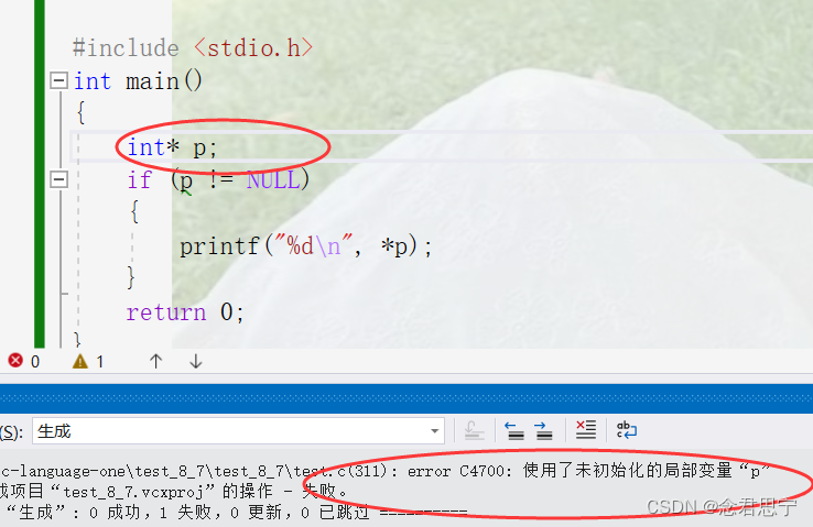 在这里面 int* p = NULL; //置空 NULL------>0 就是专门用来初始化指针的!