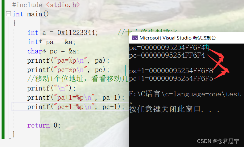 printf("pa=%p\n", pc+1);