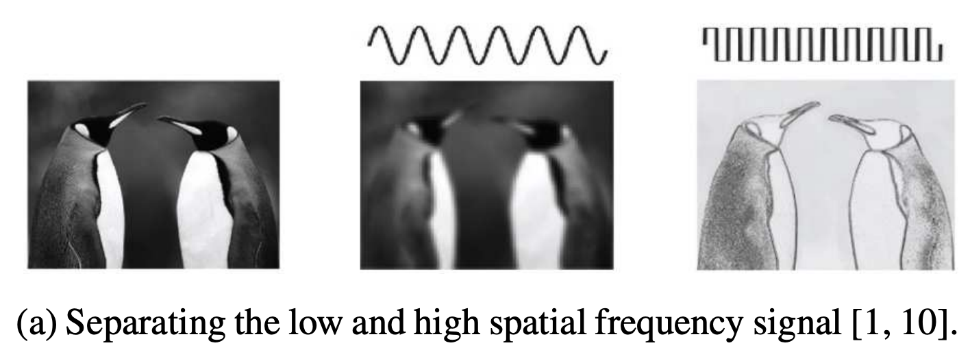 下图是论文中给出的例子,左图是原图,中图表示低频信号,右图表示高频信号。