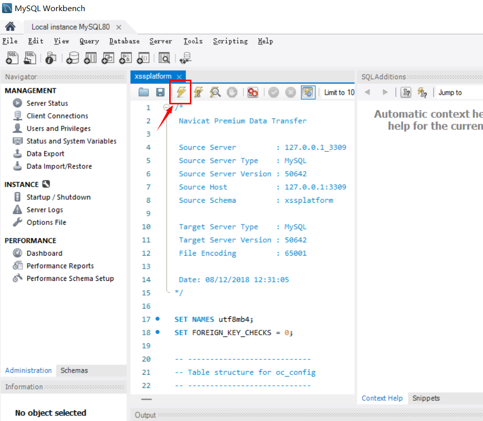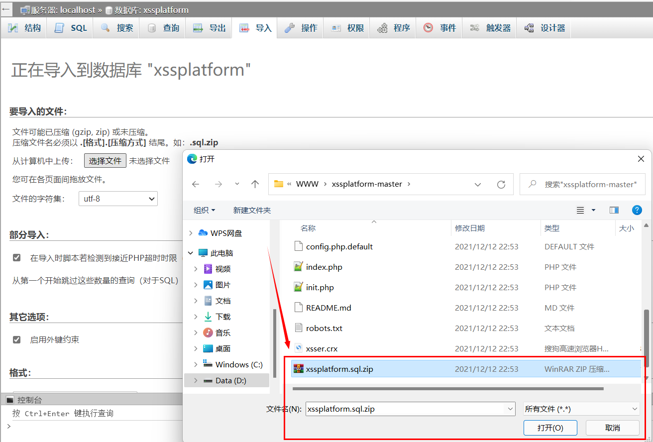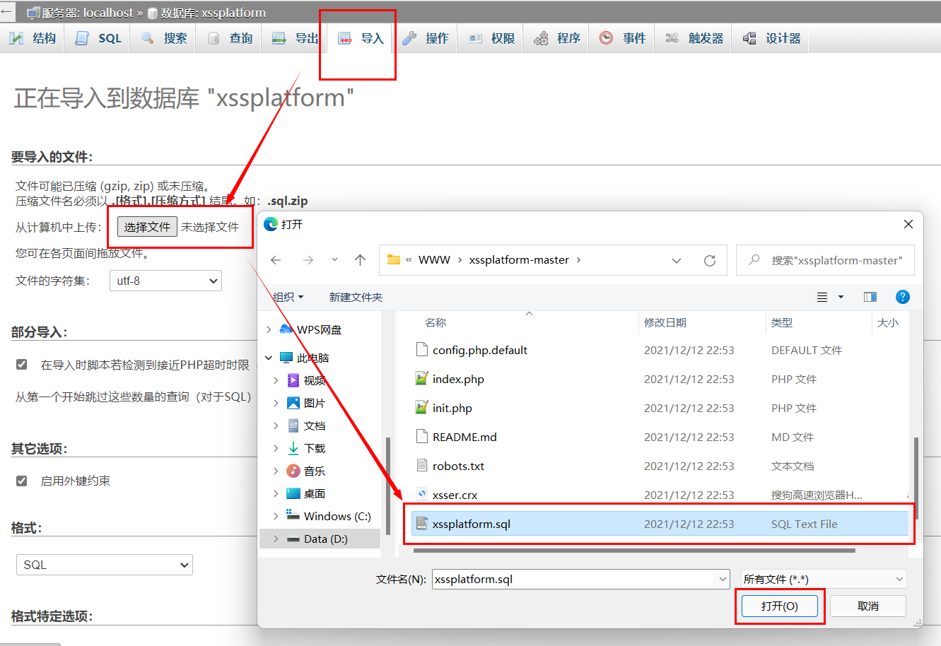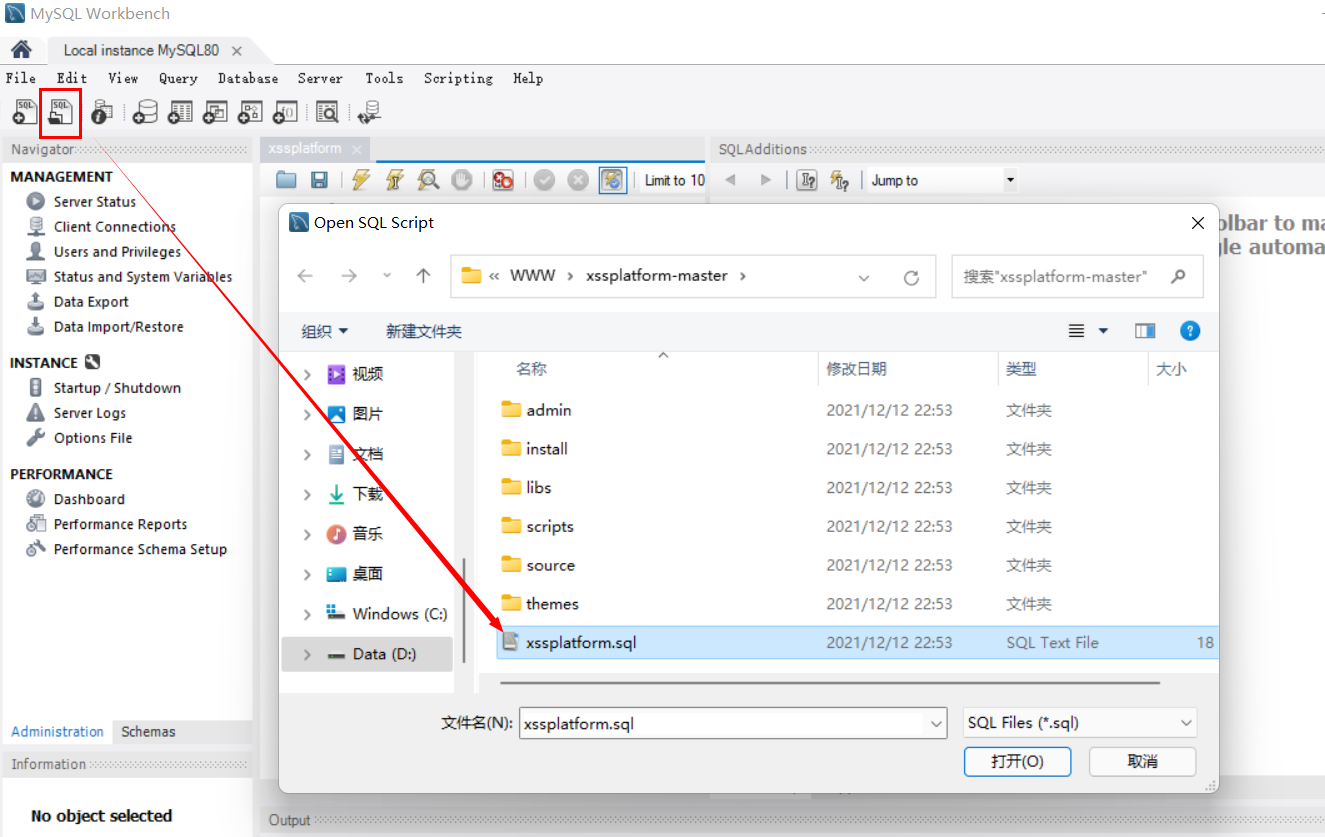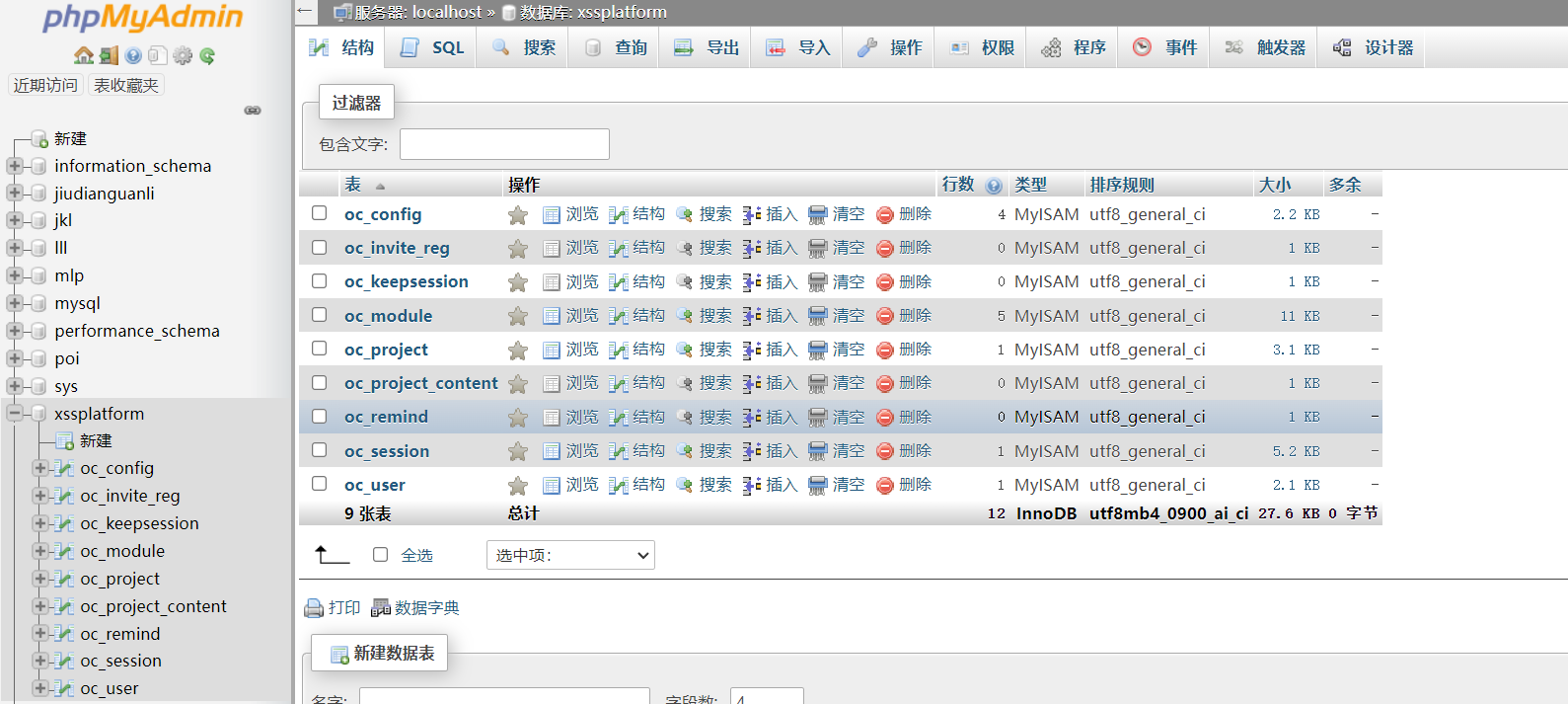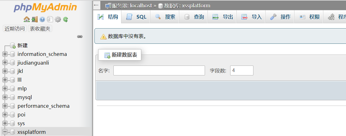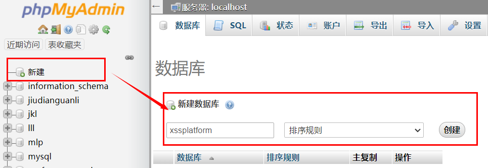 新建一个数据库,我取名为xssplatform(数据库平台)