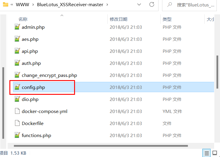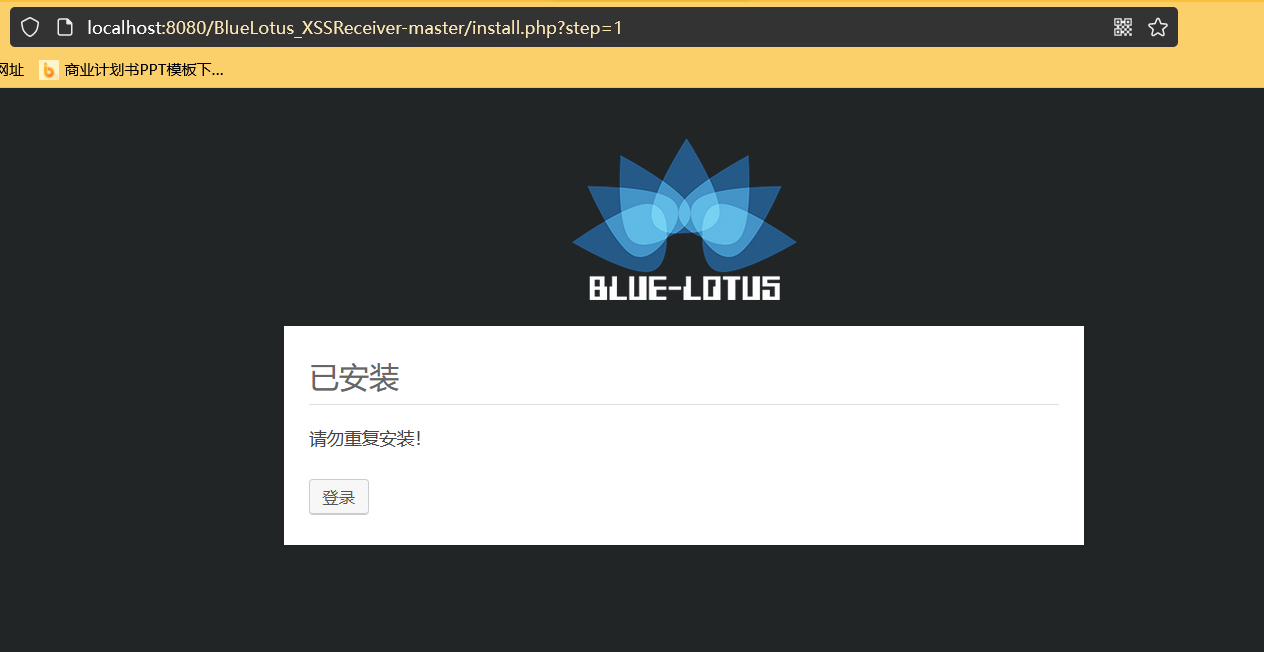 在地址栏中输入本地搭建的网站,目录下的BlueLotus_XSSReceiver-master