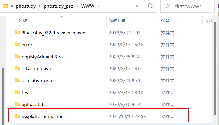 也就是将下载解压后的文件,放在WWW下(我用的是phpstudy集成环境)