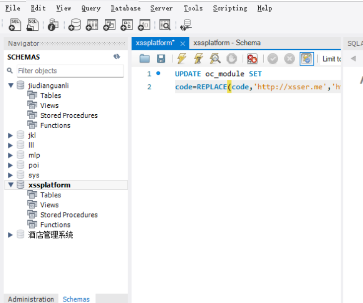 code=REPLACE(code,'http://xsser.me','http://localhost:8080/xssplatform-master')