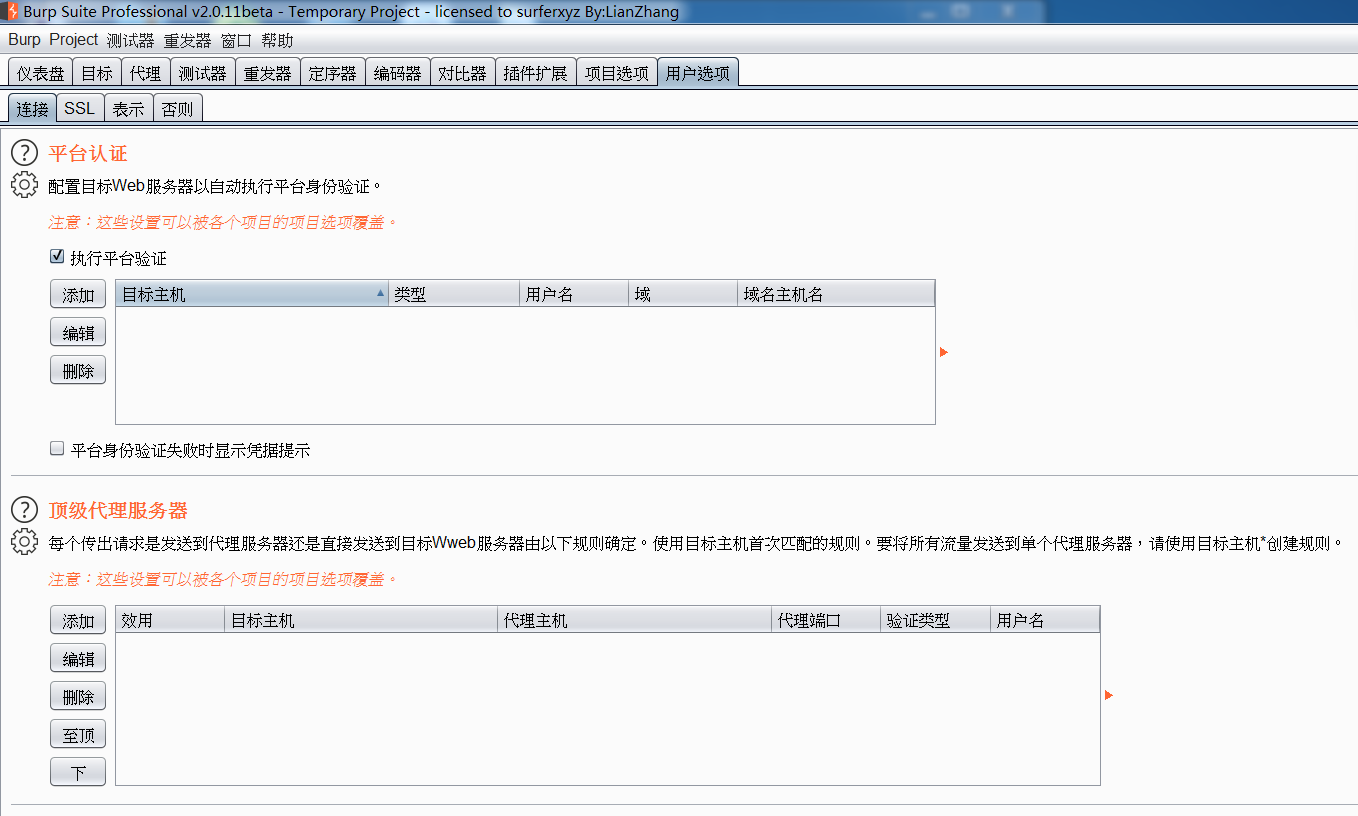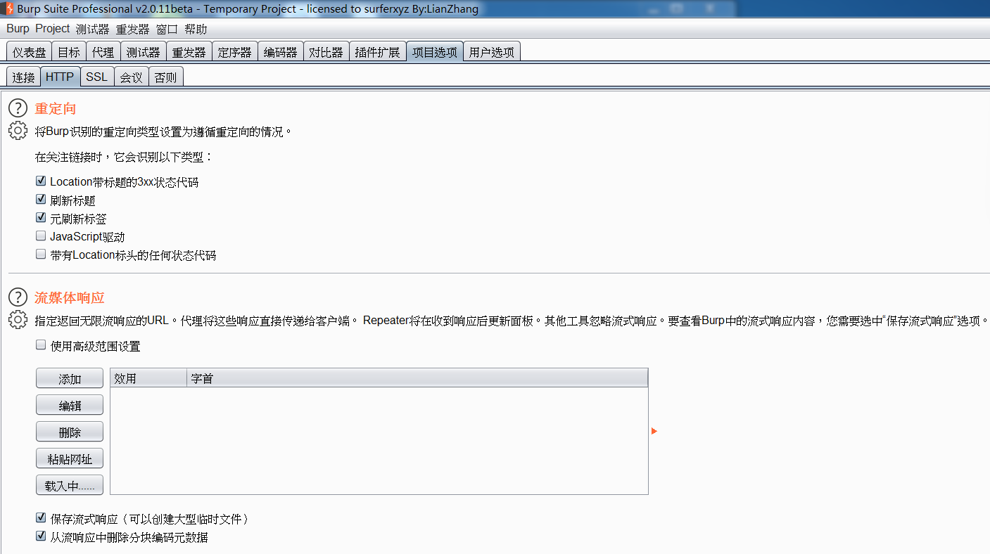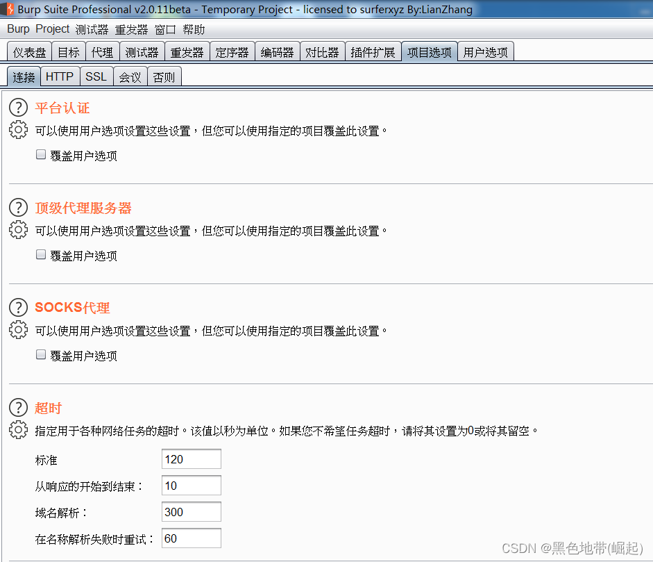 Number of retries on network failure(网络错误的重试次数):当连接错误或发生其他网络相关问题的时候,Bp会放弃当前的错误,然后重新按之前配置的次数重新请求