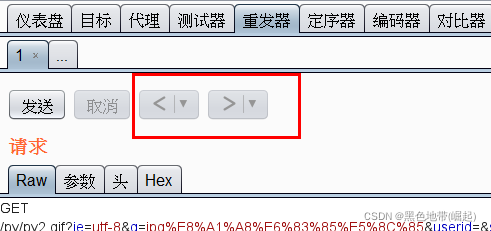 左右箭头:(顾图思义,前进或后退,就是修改后数据包发送了,这个箭头可以返回上一个数据包,也可以再回到下一个数据包)