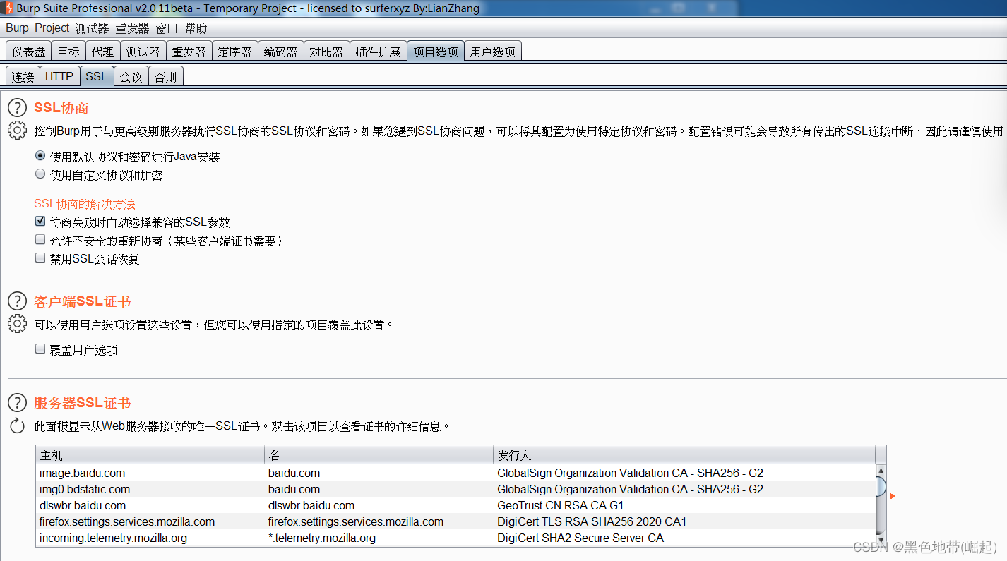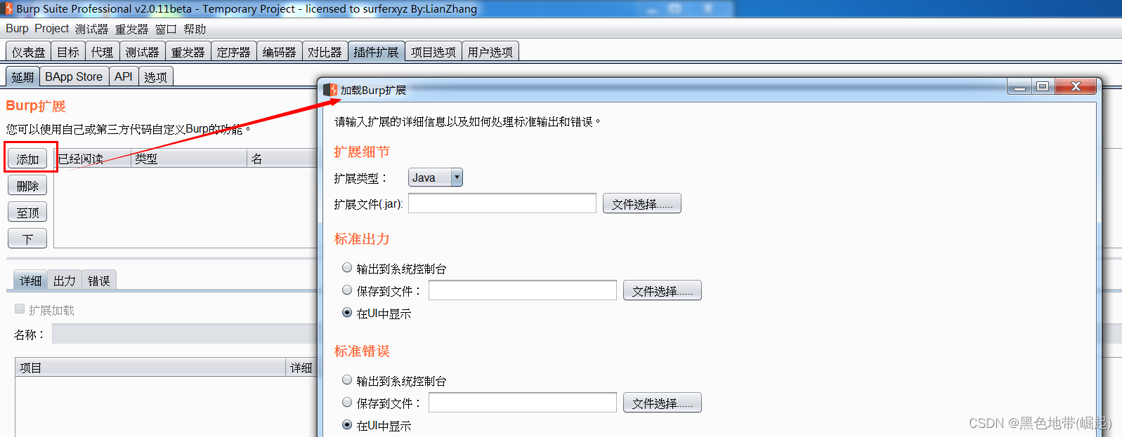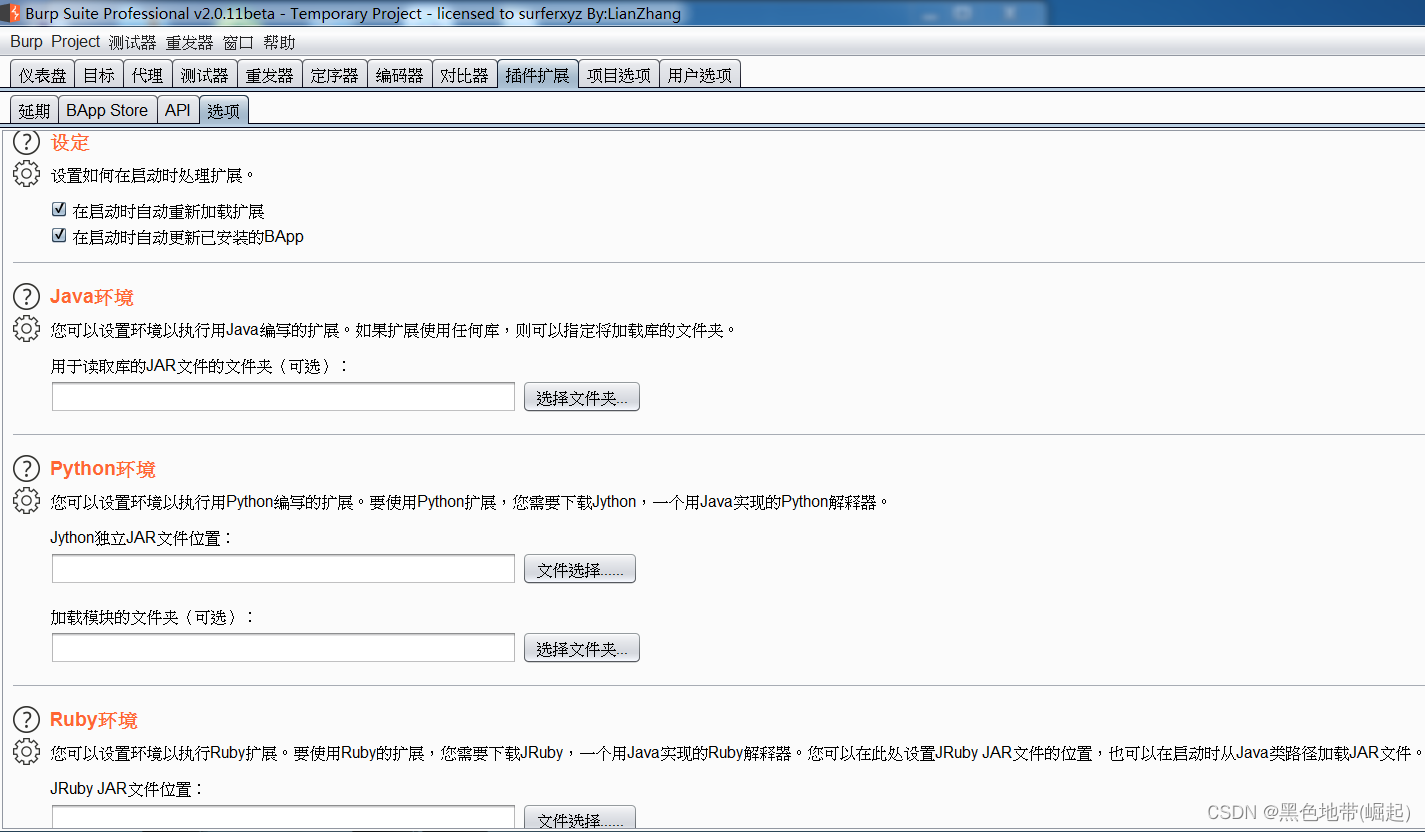 Extensions(扩展)、BApp Store(应用程序商店)、APIS(Bp扩展API)、Options(选项)