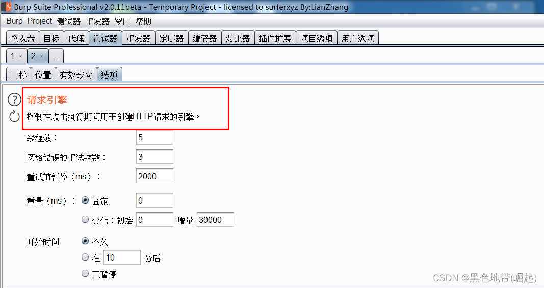 用于攻击执行期间对引擎的设置(注意对被攻击者产生的影响,以及自身的带宽和处理能力合理配置)