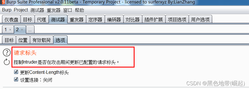 使Intruder在每个请求中添加/更新内容长度头,并使用该特定请求的http正文长度的正确值。(主要就是面向于请求头的攻击)