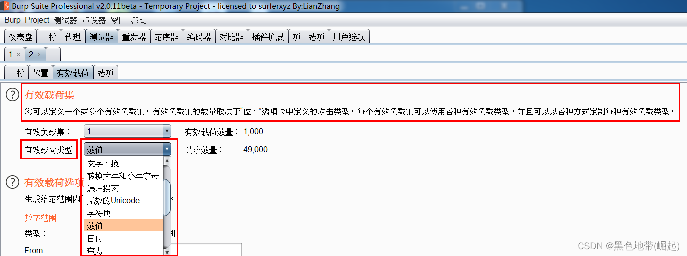 一般常见的,如模糊参数、强制猜测用户密码等只需要一个有效负载集。