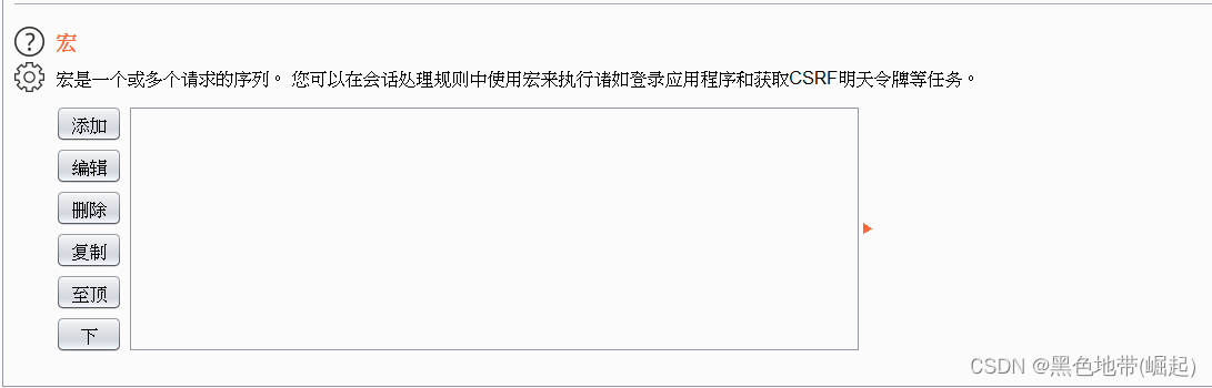 是一个或多个请求的序列,可以在会话处理规则中使用宏来执行任务(登录、获取CSRF令牌)