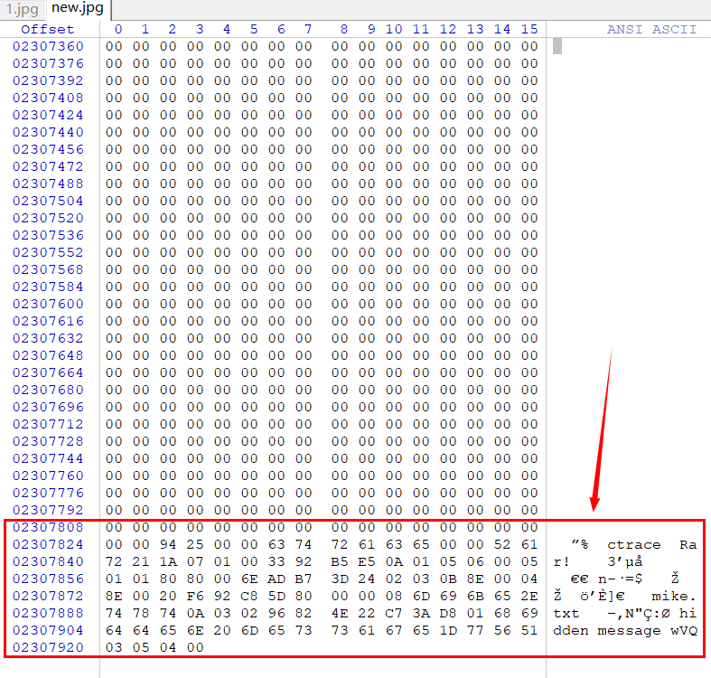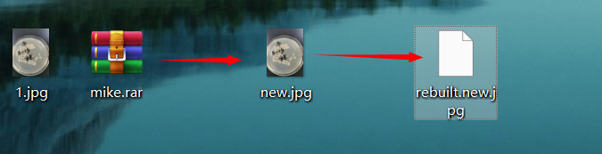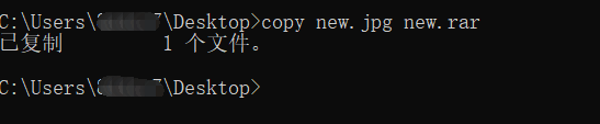 接收者收到包含隐藏消息的图像后, 通过如下命令将 JPEG图像重命名为带 .RAR 扩展名的文件。