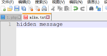 现在我们就可以打开 "mike.txt" 查看其中隐藏的原始消息了