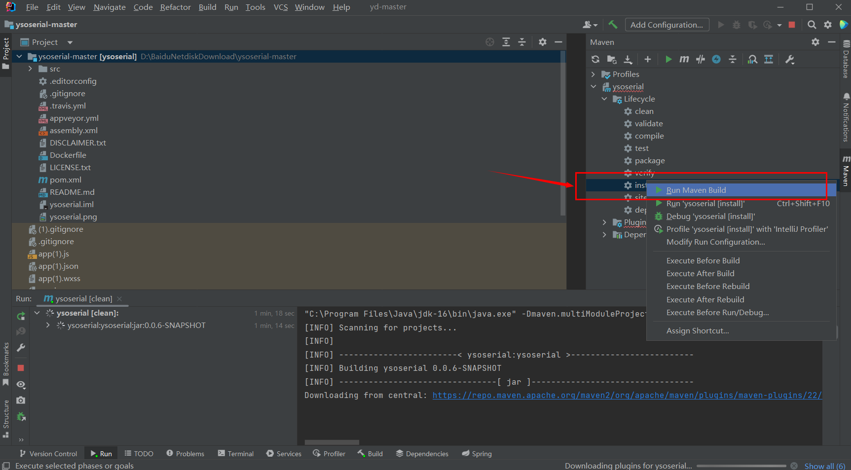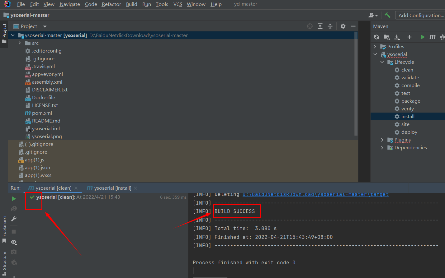 下载完成后,当出现了BUILD SUCCESS就打包成功了