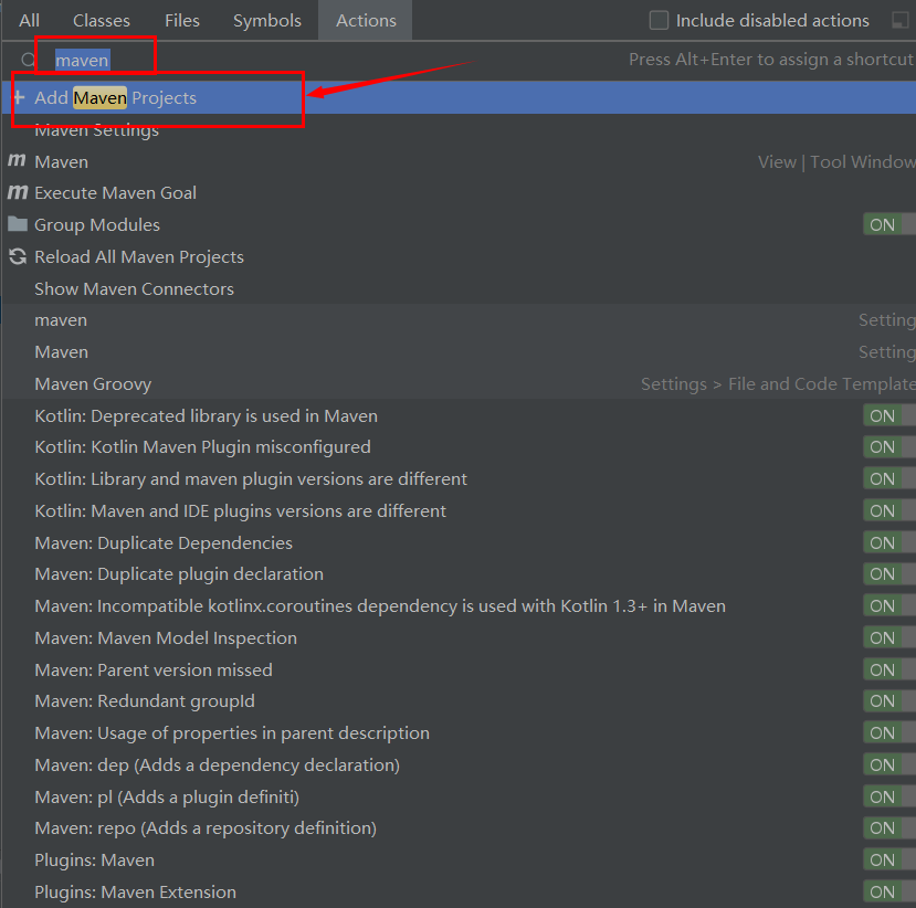 Help-----Find Action------输入Maven Projects--------+ Add Maven Projects